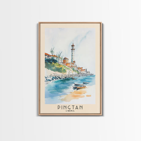 Pink Sunset, Vaporwave Aesthetic pixel art beach sunset, framed canvas print
