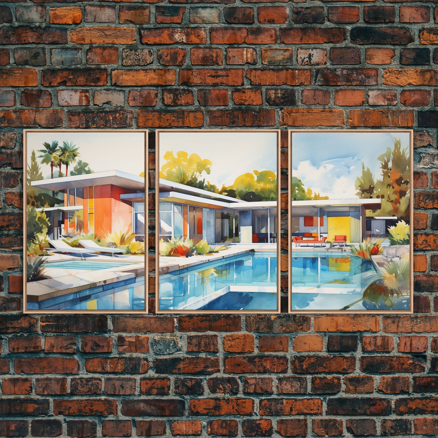 Architecture Wall Art, Mid-century House Art, Canvas Print, Butterflies, Wall Art, 3 Piece Wall Art, Modern Office Art, Home Decor Prints