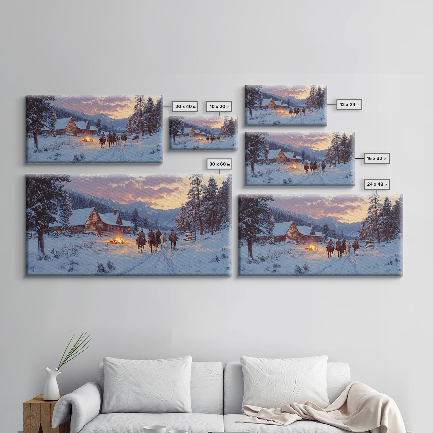 Cowboys and Log Cabin Winter Christmas Framed Canvas Print, Rustic Mountain Holiday Scene Art, Best Christmas Gift Idea, Winter Decor - 10x20 Inches / Gallery Wrap Canvas - Ready To Hang está agotado y se enviará tan pronto como vuelva a estar disponible.