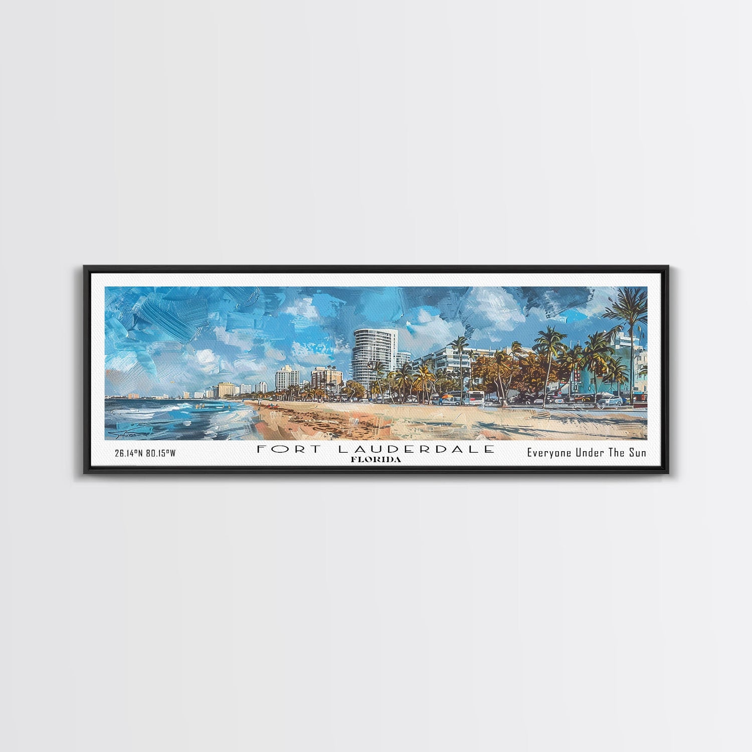 Fort Lauderdale Florida Panoramic Watercolor Painting, Scenic Framed Canvas Print, Urban Wall Art for Living Room, Travel Poster, Home Decor, City Gift Idea