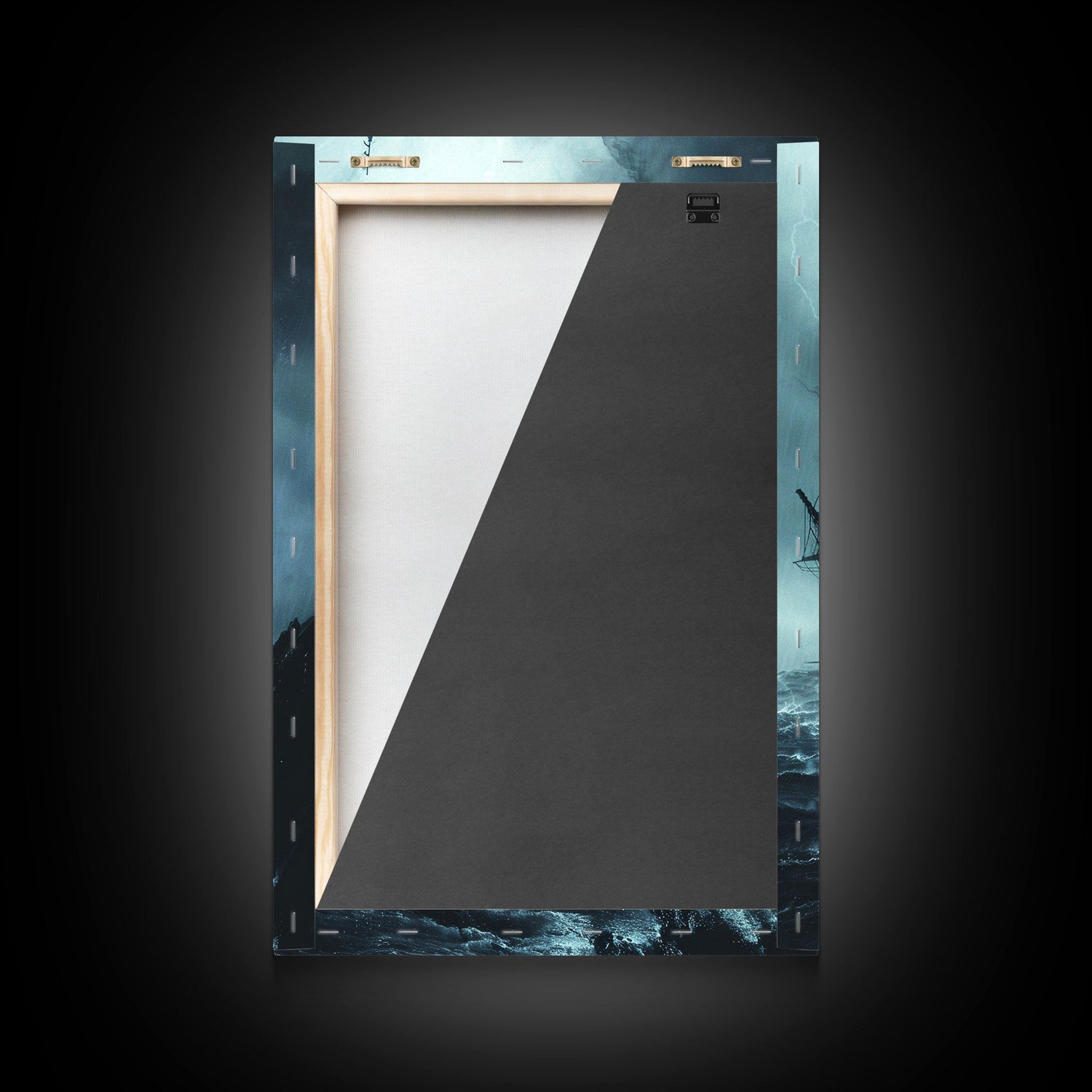 Ghost Ship in Storm Halloween Art, Spooky Maritime, Haunted Ocean, Creepy Seascape, Stormy Night, Framed Canvas Print