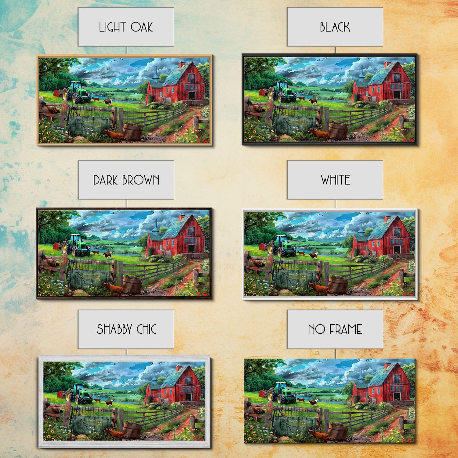 Green Tractor and Red Barn with Farm Animals, Vibrant Rural Art, Framed Canvas Print, Country Wall Decor, Living Room Decoration - 10x20 Inches / Gallery Wrap Canvas - Ready To Hang está agotado y se enviará tan pronto como vuelva a estar disponible.