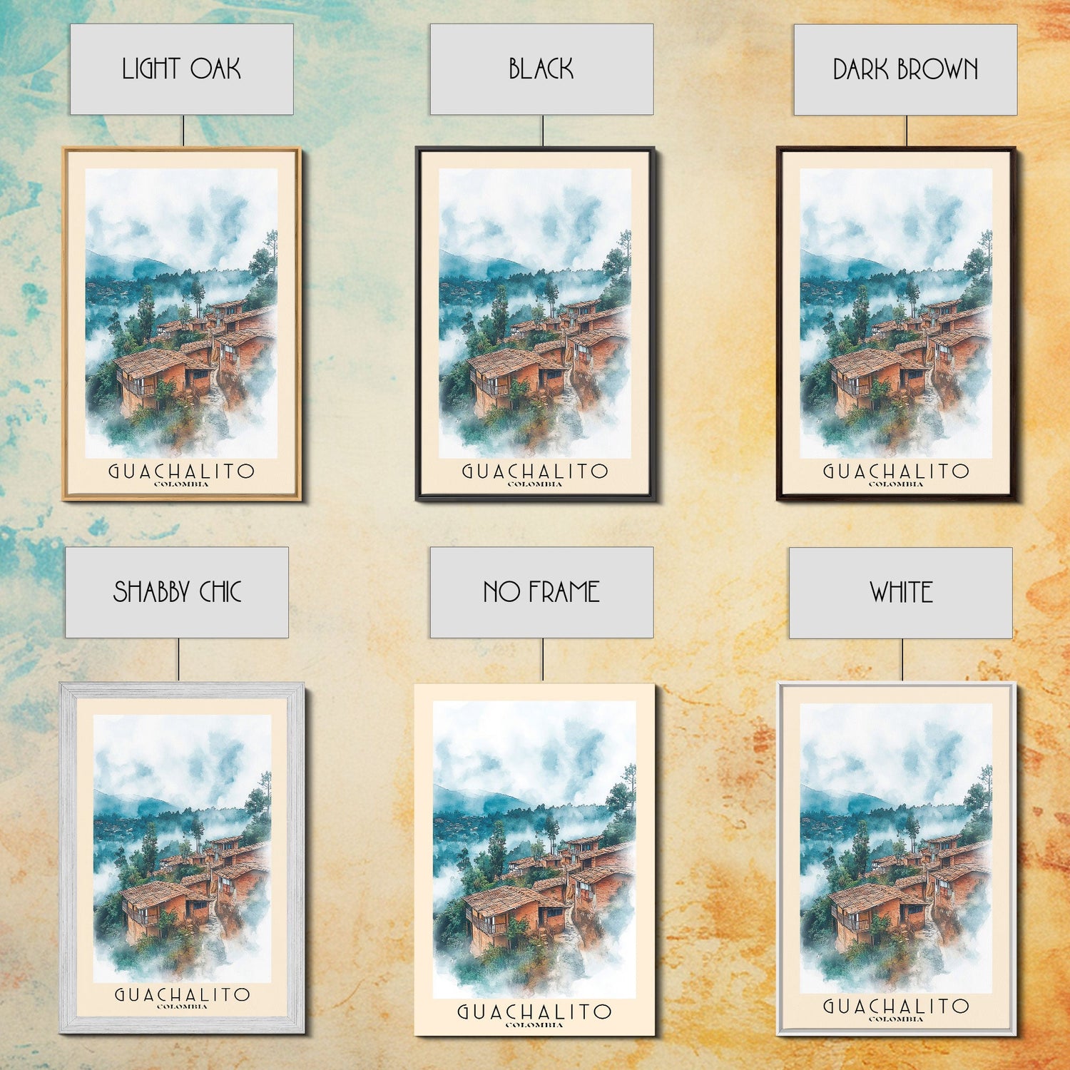 Guachalito, Colombia Watercolor Beach Print, Vacation Gift, Colombia Wall Art, Framed Canvas Print, Framed Beach Painting