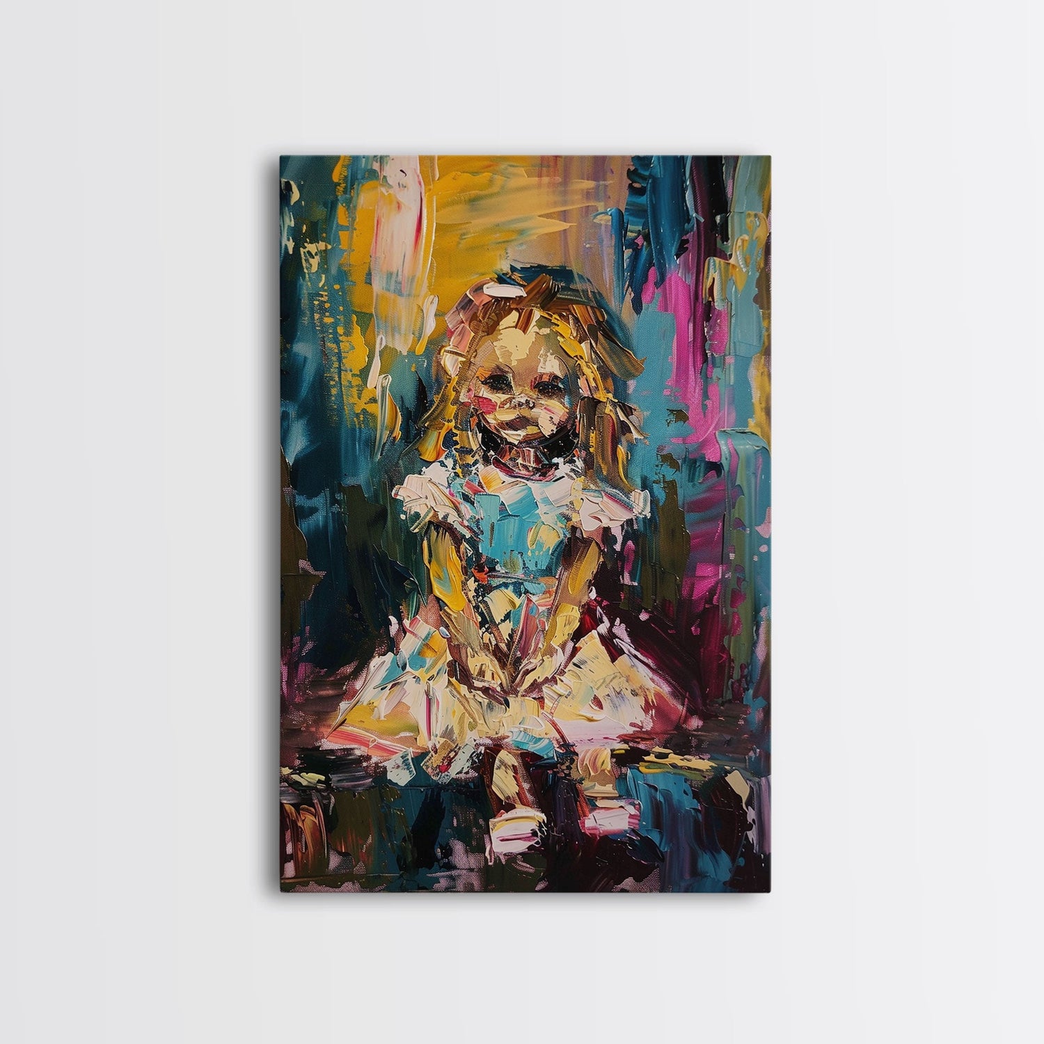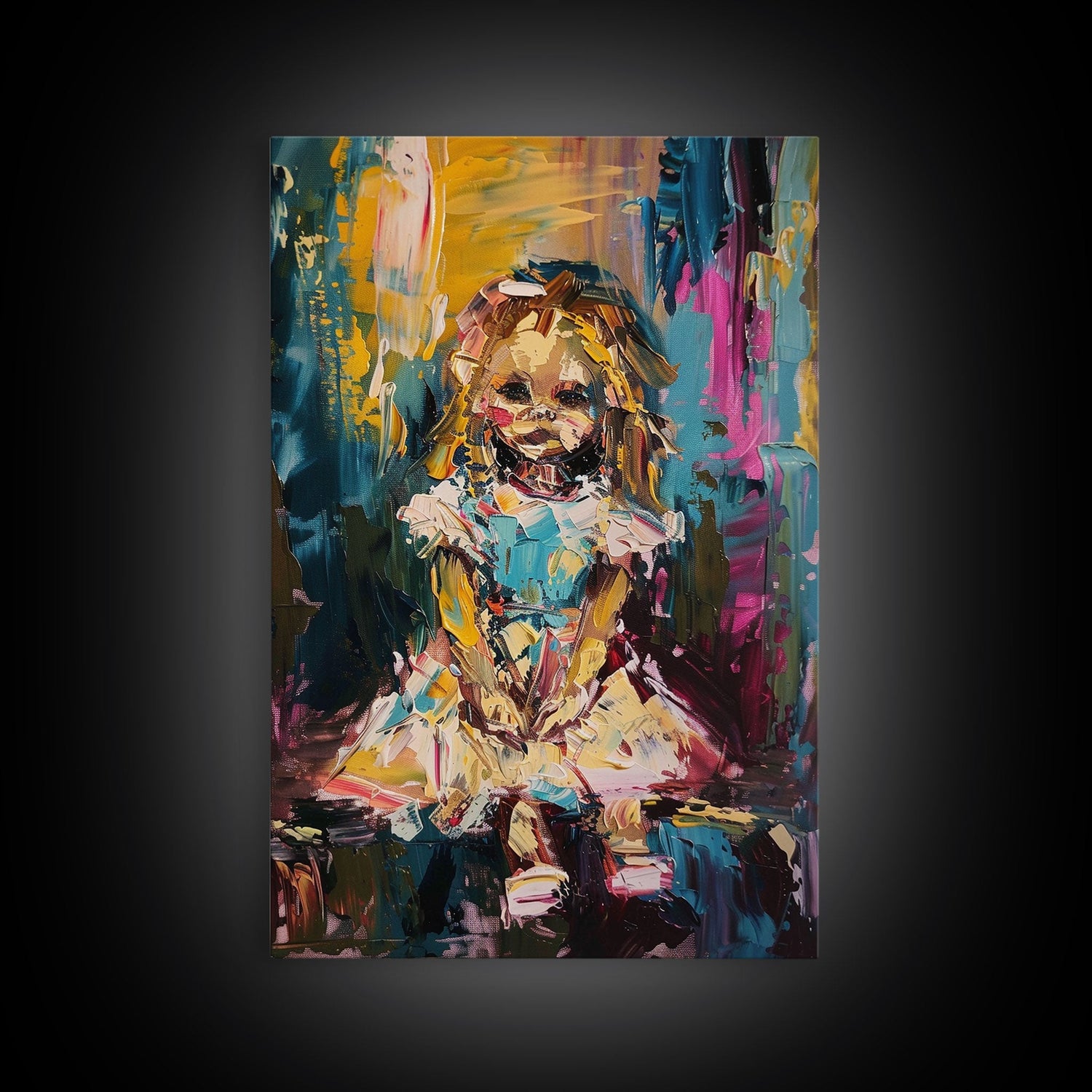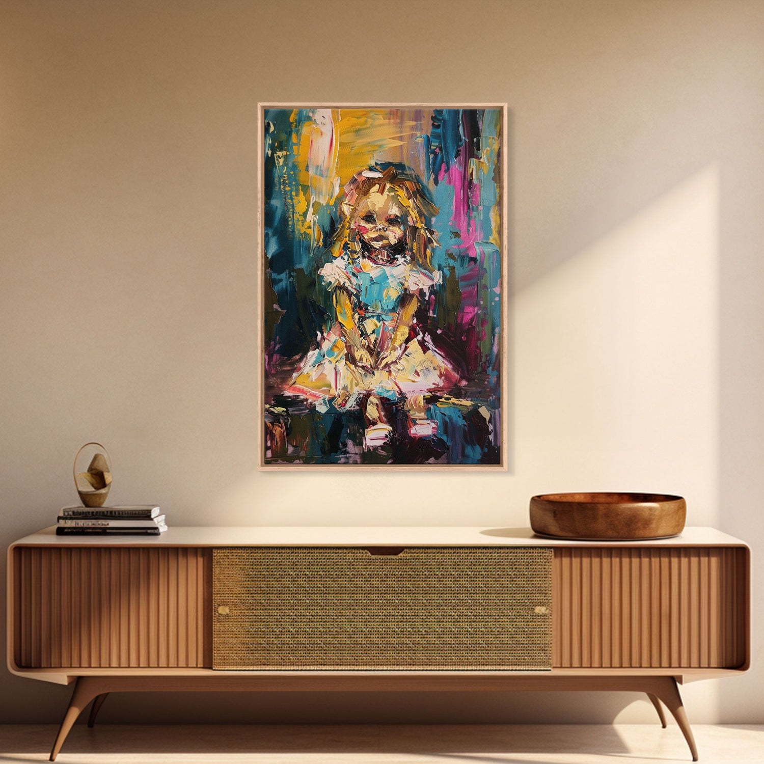 Halloween Ghost Eating Cake, Framed Canvas Print, Wall Art, Spooky Decor, Halloween Decoration, Living Room Art, Unique Gift