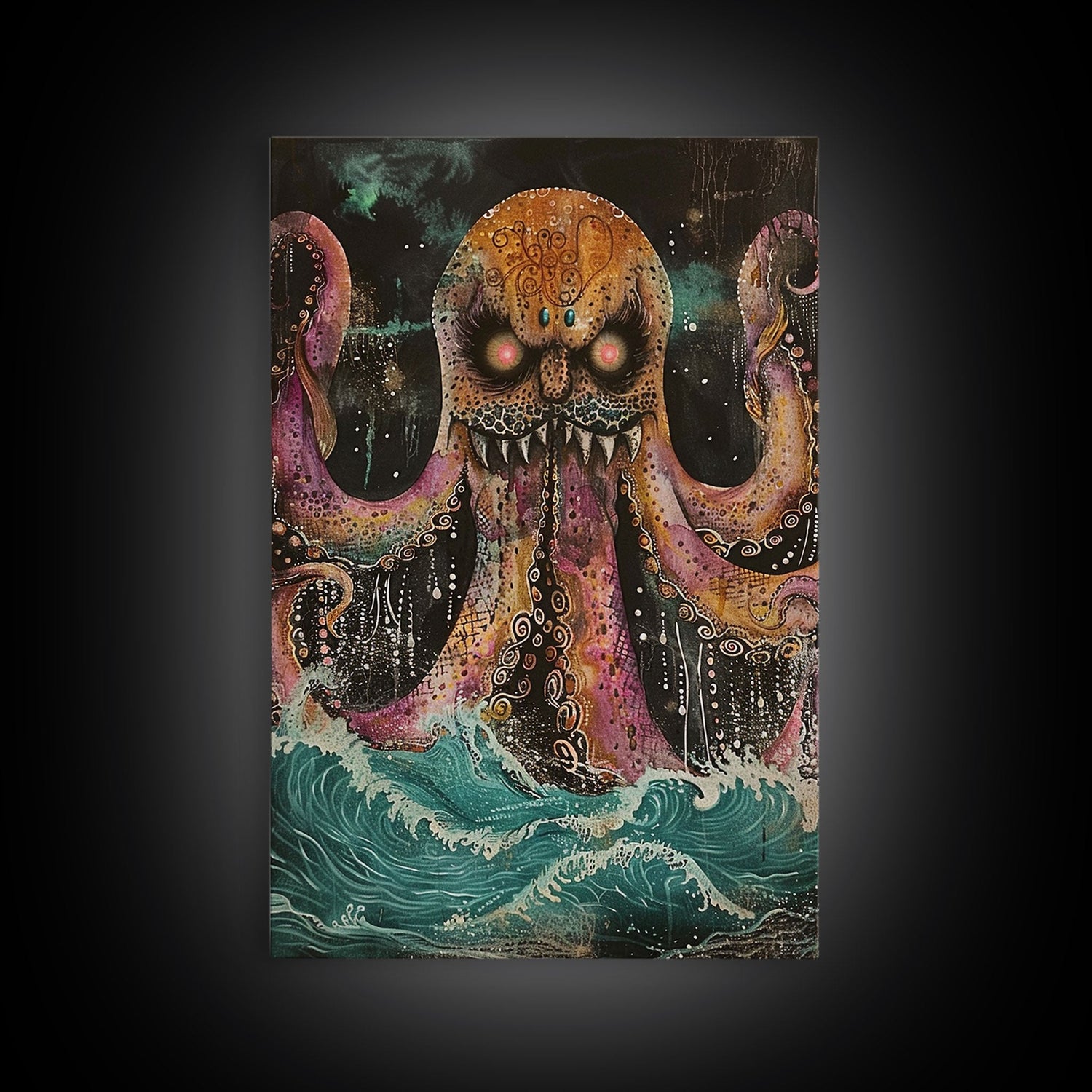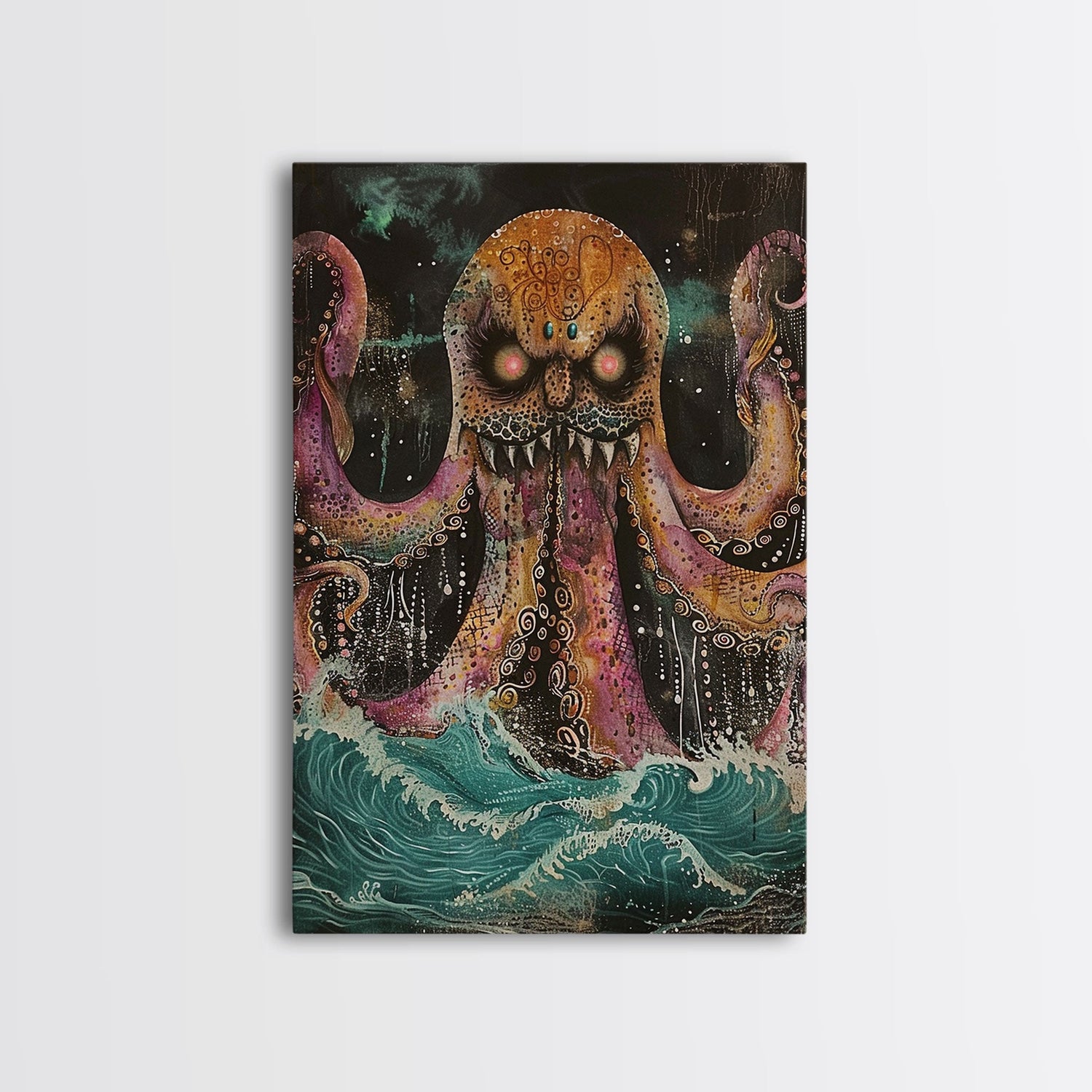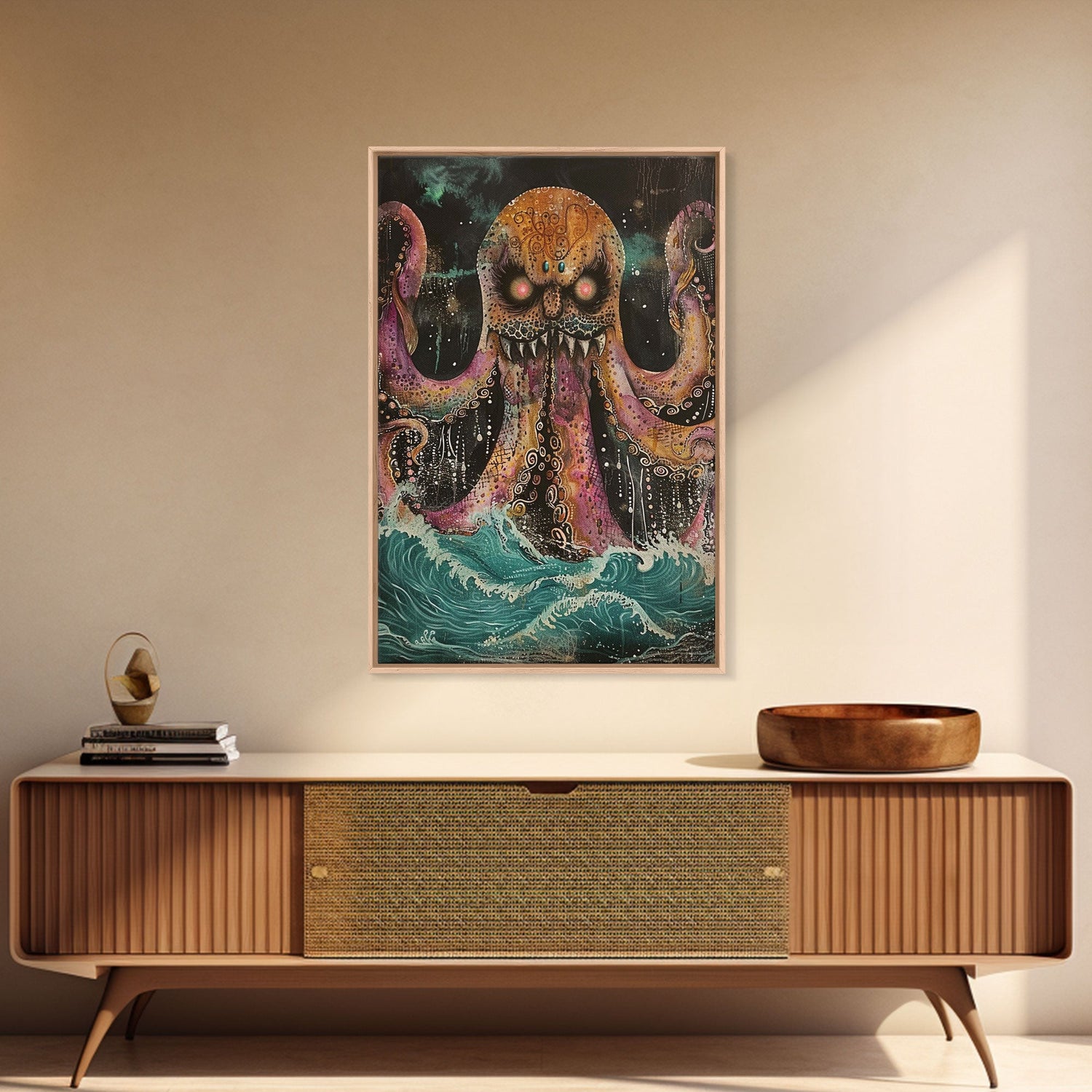 Halloween Nightmarish Werewolf in the Forest Framed Canvas Print, Wall Art, Living Room Decor, Halloween Decoration, Scary Art, Haunted Art