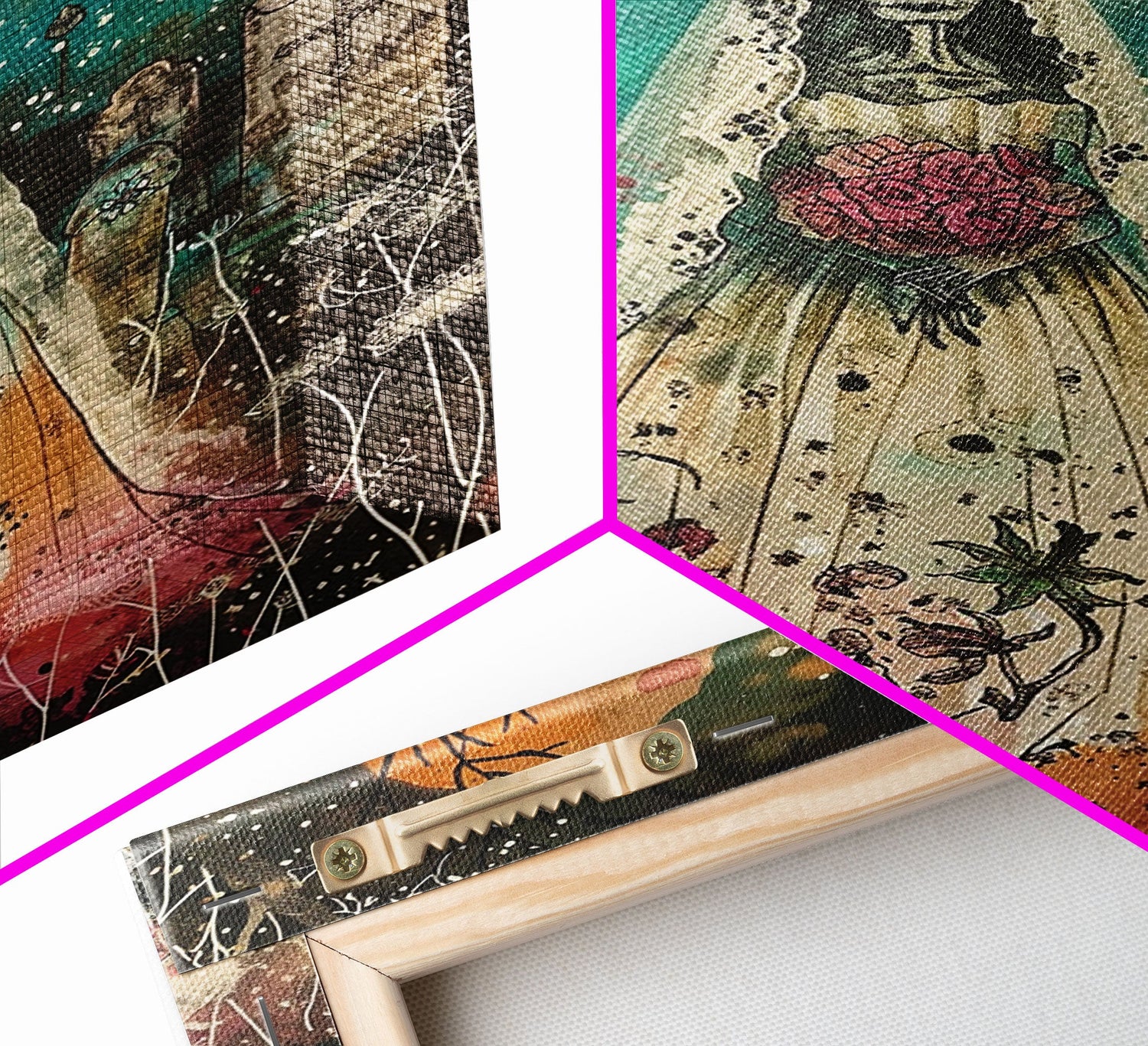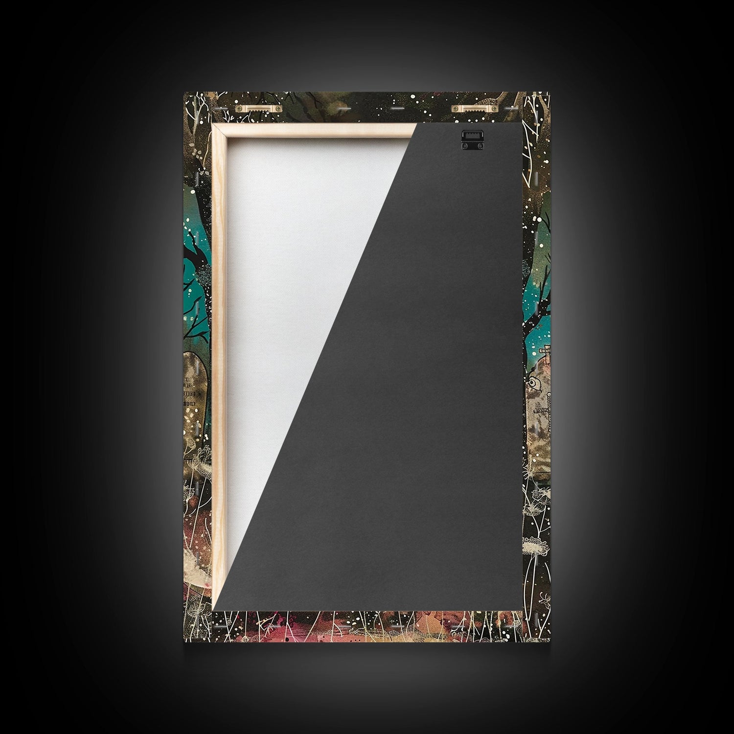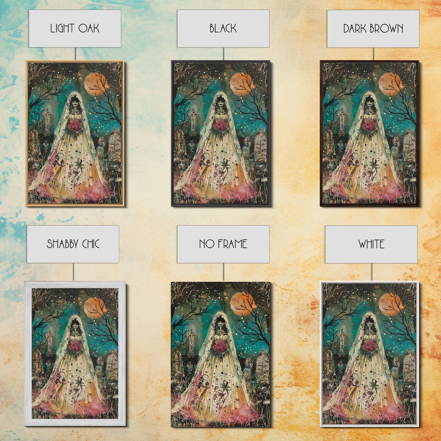 Halloween Skeleton Bride in Cemetery, Framed Canvas Print, Wall Art, Living Room Decor, Spooky, Skeleton Art, Original Painting, Home Decor