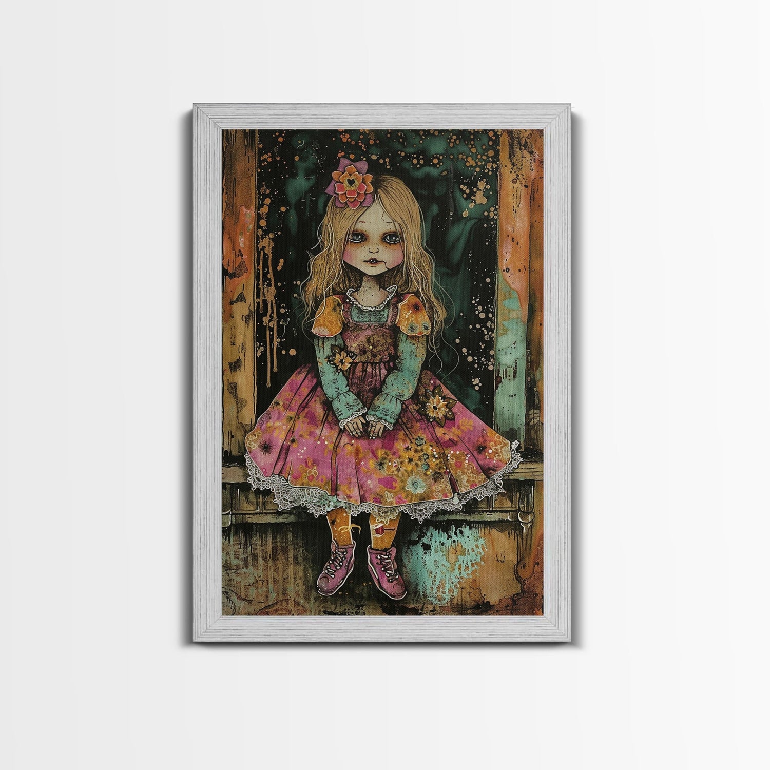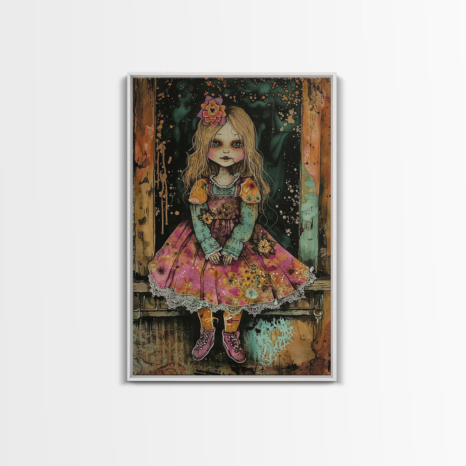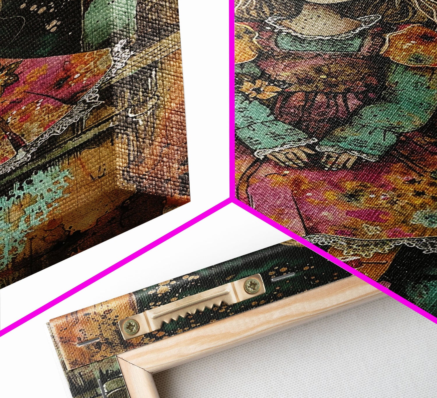 Halloween Witch in Forest Framed Canvas Print, Spooky Decor, Living Room Art, Whimsical Halloween Wall Art, Home Decoration, Retro Style Art