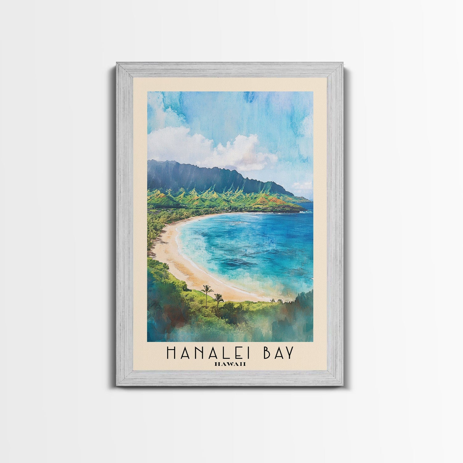 Hanalei Bay, Hawaii Watercolor Beach Print, Vacation Gift, Hawaii Wall Art, Framed Canvas Print, Framed Beach Painting