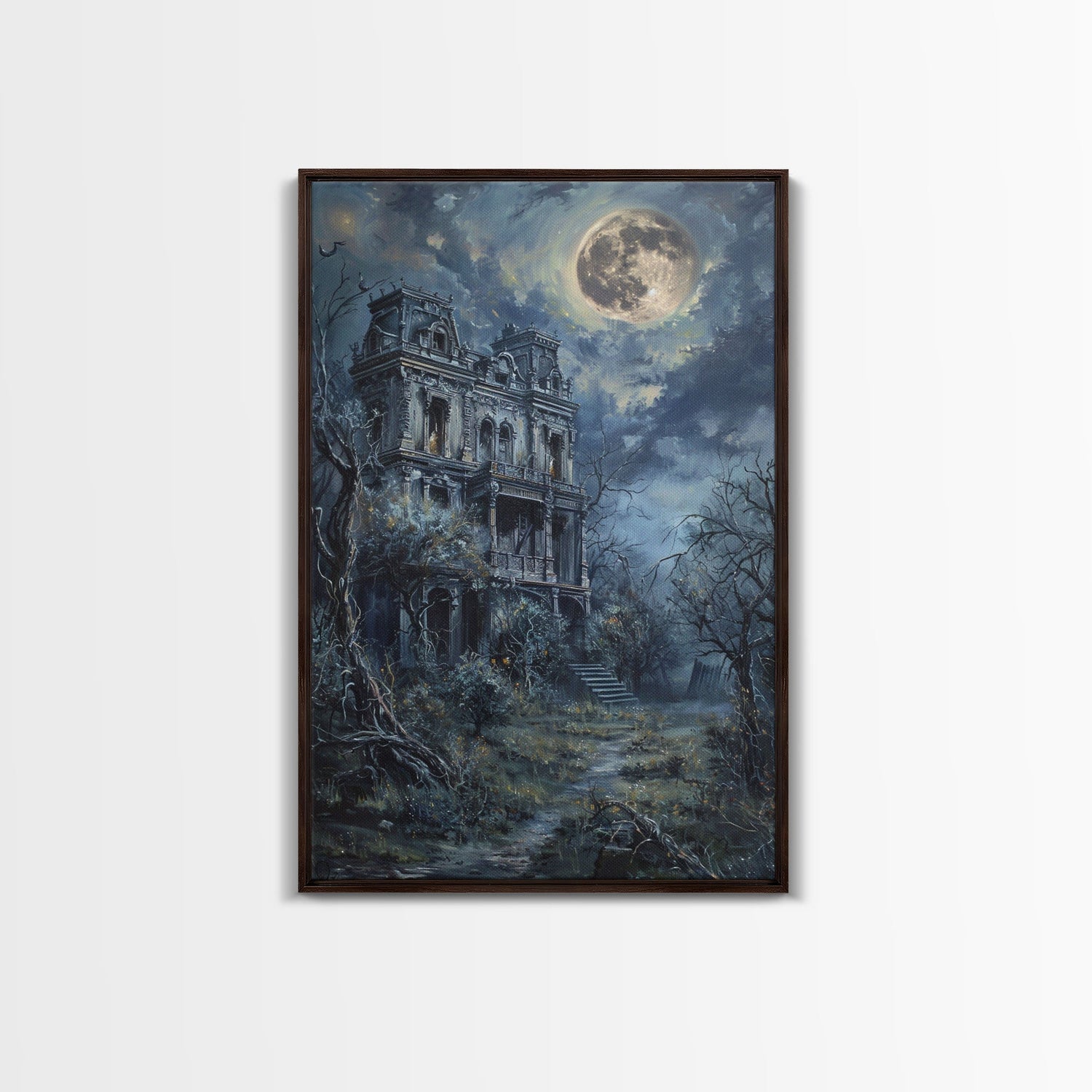 Haunted Victorian Mansion Halloween Art, Spooky House, Haunted Home, Creepy Building, Gothic Decor, Framed Canvas Print