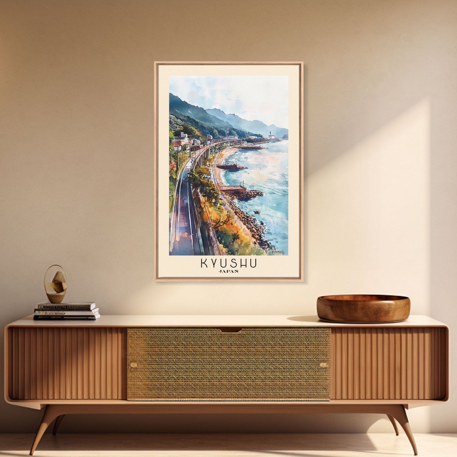 Kyushu, Japan Watercolor Beach Print, Vacation Gift, Japan Wall Art, Framed Canvas Print, Framed Beach Painting