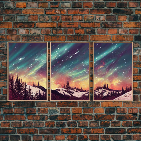 Snowfall in the forest, 3 Piece Wall Art, Ready To Hang Canvas Print