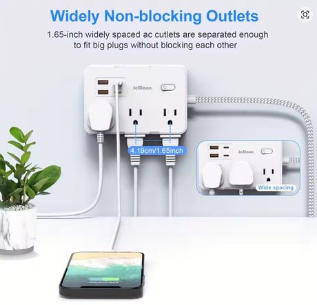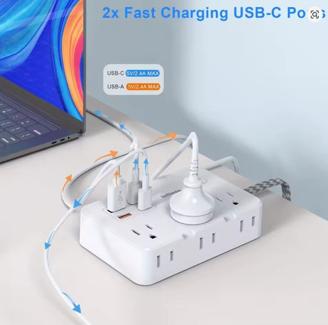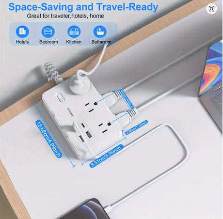 8-in-1 US Outlet Power Strip Cruise Ship Allowed, 3.6 Ft. Extension Cord