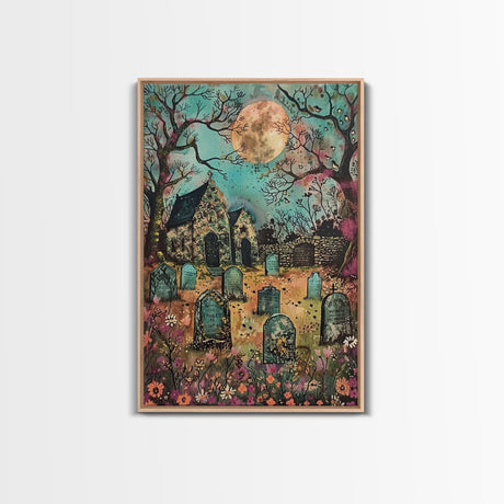 Ballerina Dancing In The Fog, Framed Canvas Print, Halloween Decor, Macabre Dark Academia Wall Art