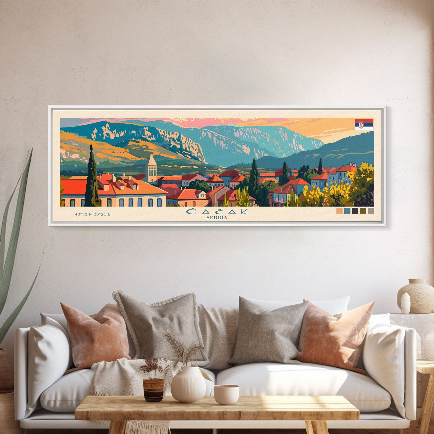Čačak Serbia Wall Art, Panoramic Travel Poster, Panoramic Framed Canvas Print, City Wall Art, Wall Hanging Home Decor, Travel Art