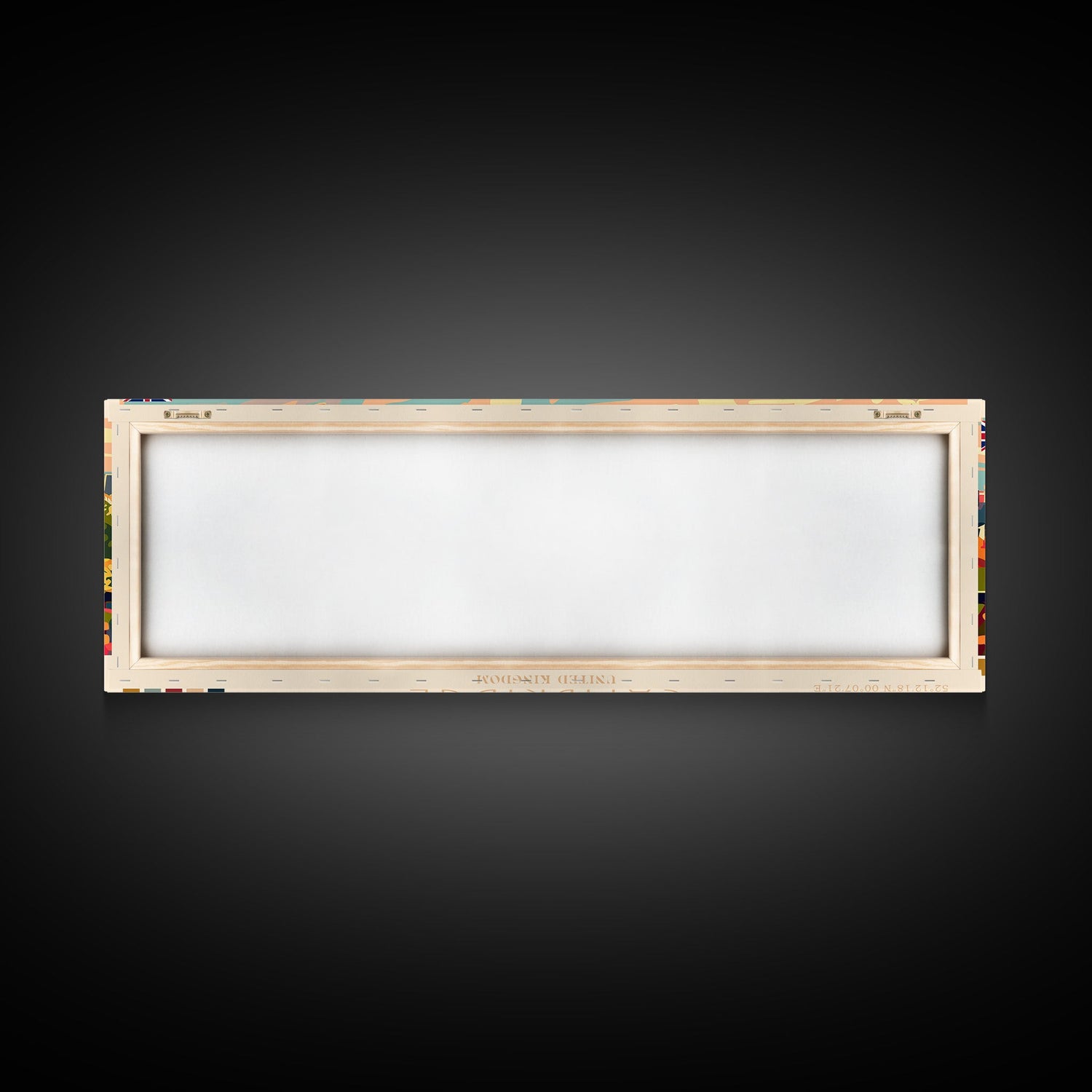 Most of our canvases are made in the USA, with the exception of canvases ordered with the light oak unstained frames, and any large canvases (24x48, 30x60, 16x48 and 20x60) ordered WITH a frame. These are temporarily made in and shipped from Europe, while we try to find a more consistent supplier in the USA.