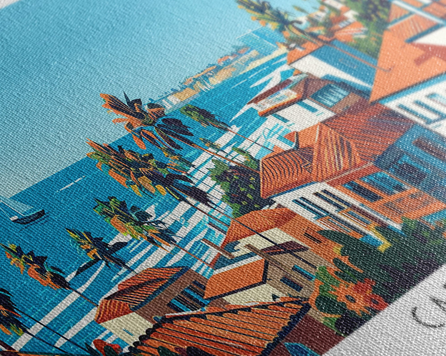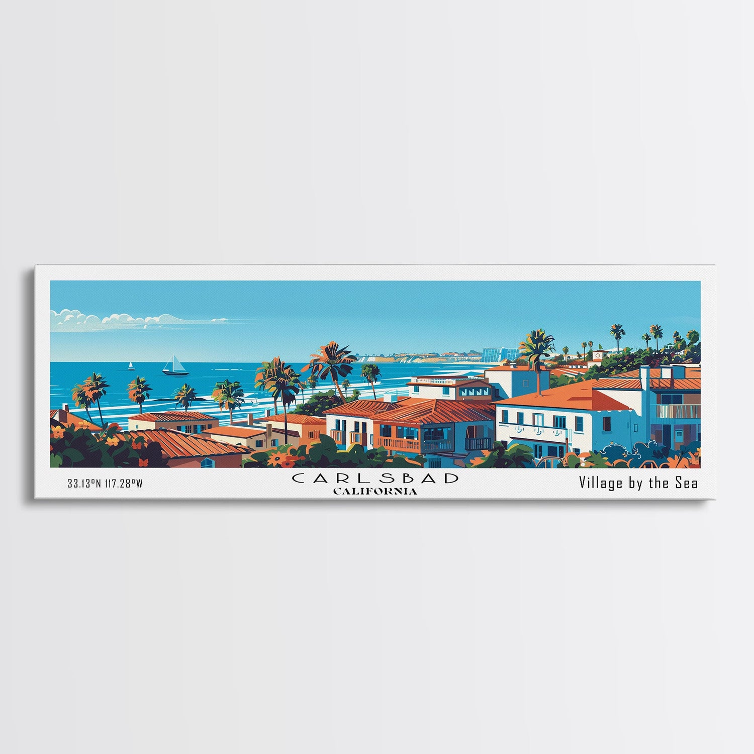Carlsbad California Panoramic Painting, Mid Century Modern Framed Canvas Print, Retro Pop Art Travel Poster, Living Room Wall Art, City Print