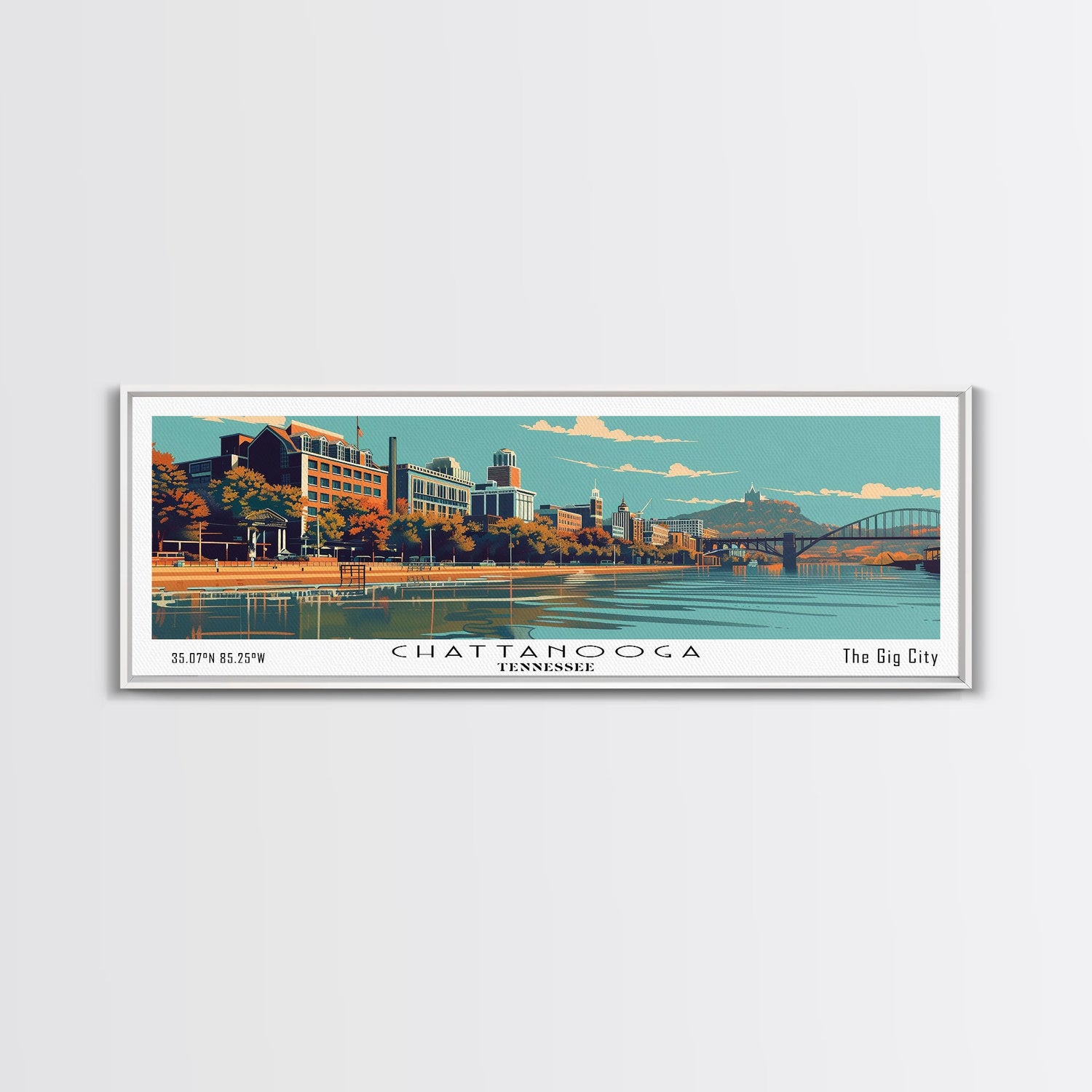 Chattanooga Tennessee Panoramic Painting, Framed Canvas Print, Mid Century Modern Wall Art, Retro Pop Art Travel Poster, Home Decor, City Art