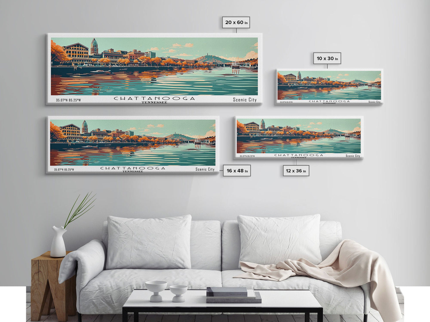 Chattanooga Tennessee Panoramic Painting, Framed Canvas Print, Mid Century Modern Wall Art, Retro Pop Art Travel Poster, Office Decor, City Art - 10x30 Inches / Gallery Wrap Canvas - Ready To Hang está agotado y se enviará tan pronto como vuelva a estar disponible.