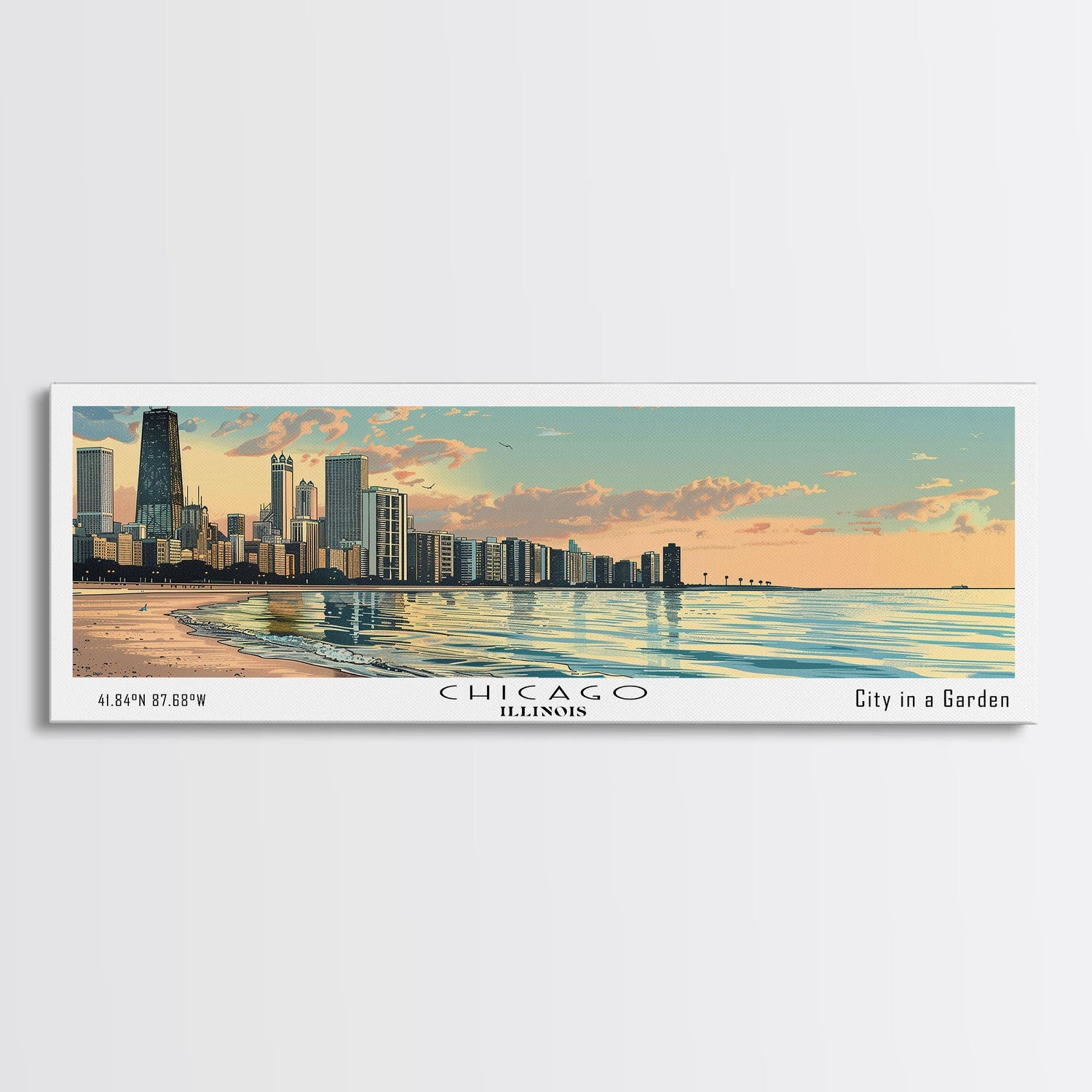 Chicago Florida Panoramic Painting, Mid Century Modern Framed Canvas Print, Retro Pop Art Travel Poster, Living Room Wall Art, City Art - 10x30 Inches / No Frame - Stretched Canvas Only está agotado y se enviará tan pronto como vuelva a estar disponible.
