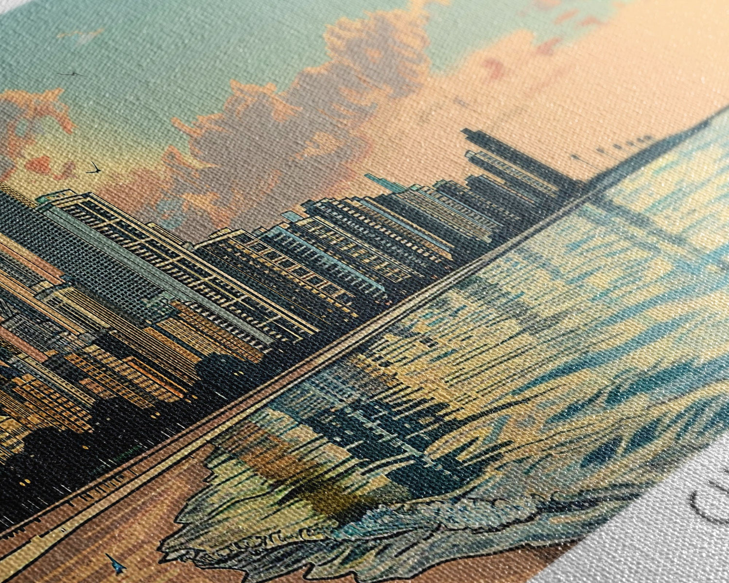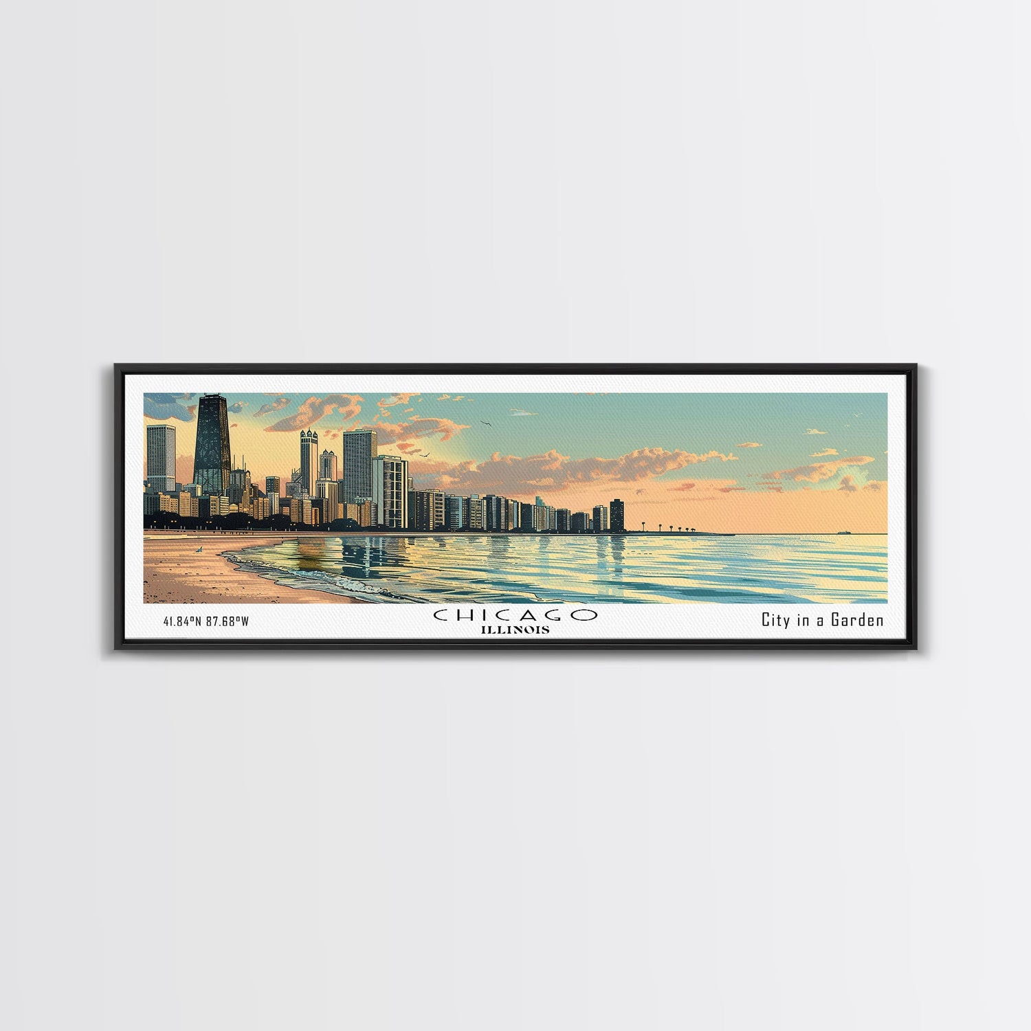 Chicago Florida Panoramic Painting, Mid Century Modern Framed Canvas Print, Retro Pop Art Travel Poster, Living Room Wall Art, City Art