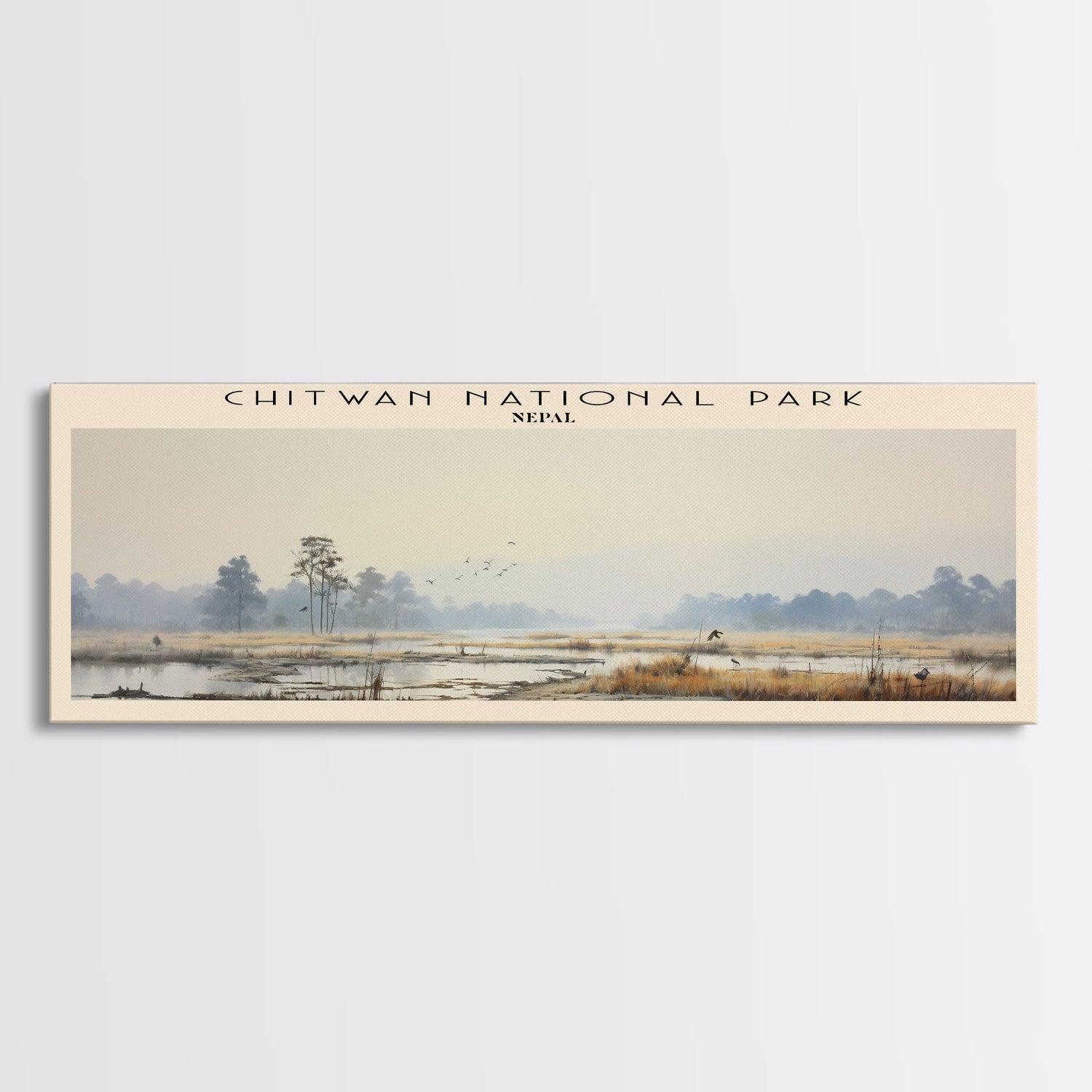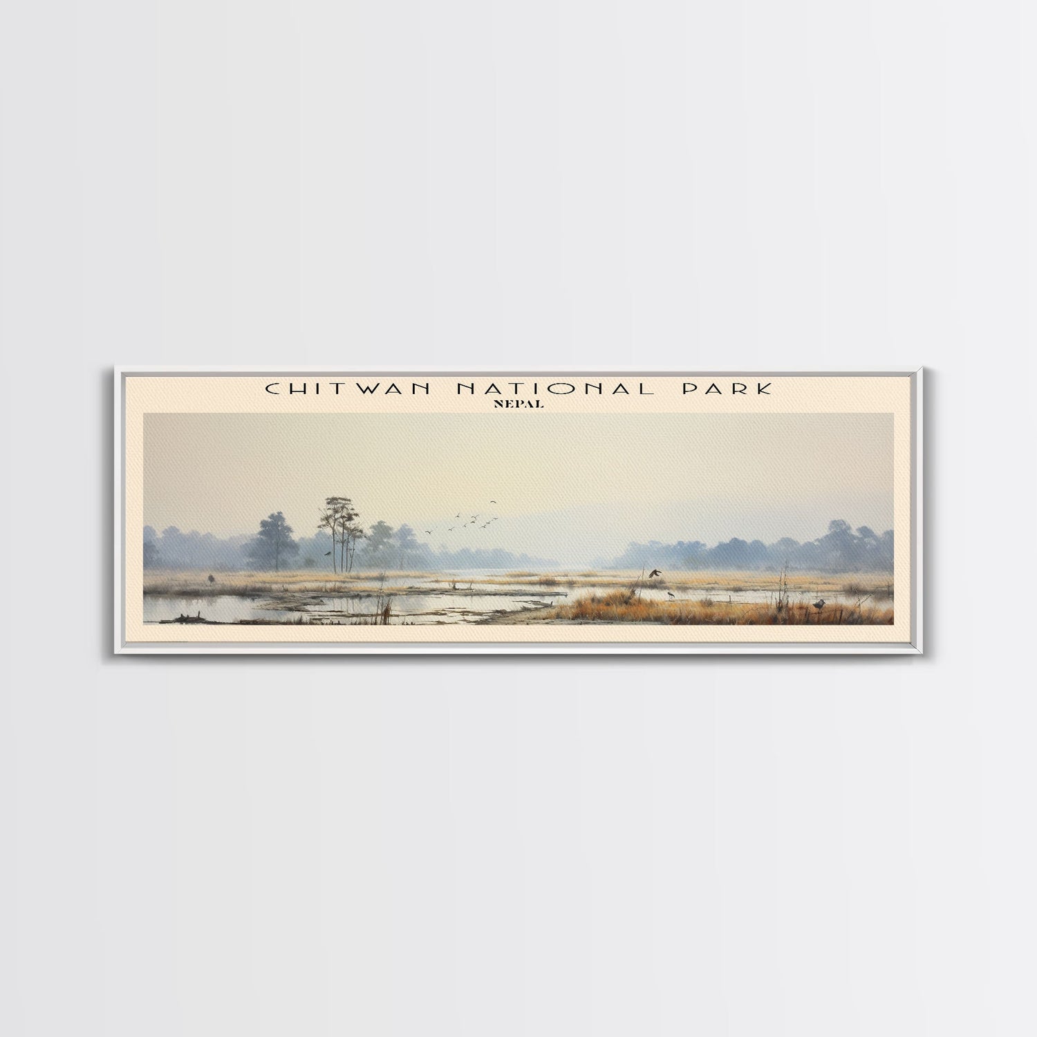 Chitwan National Park Travel Print Wall Art, Travel Poster Print, Retro Style COUNTRY Home Decor, Wall Hanging, Travel Gift Idea, Unique Metal Art - 10x30 Inches / Gallery Wrap Canvas - Ready To Hang está agotado y se enviará tan pronto como vuelva a estar disponible.