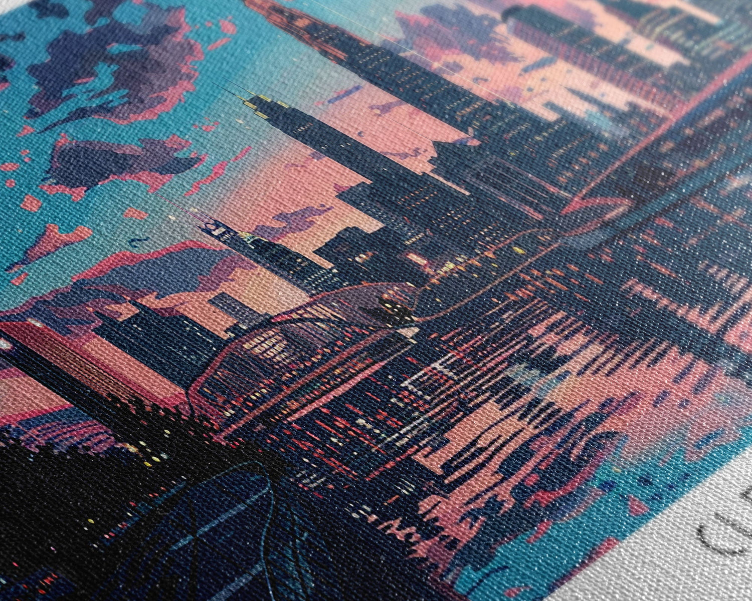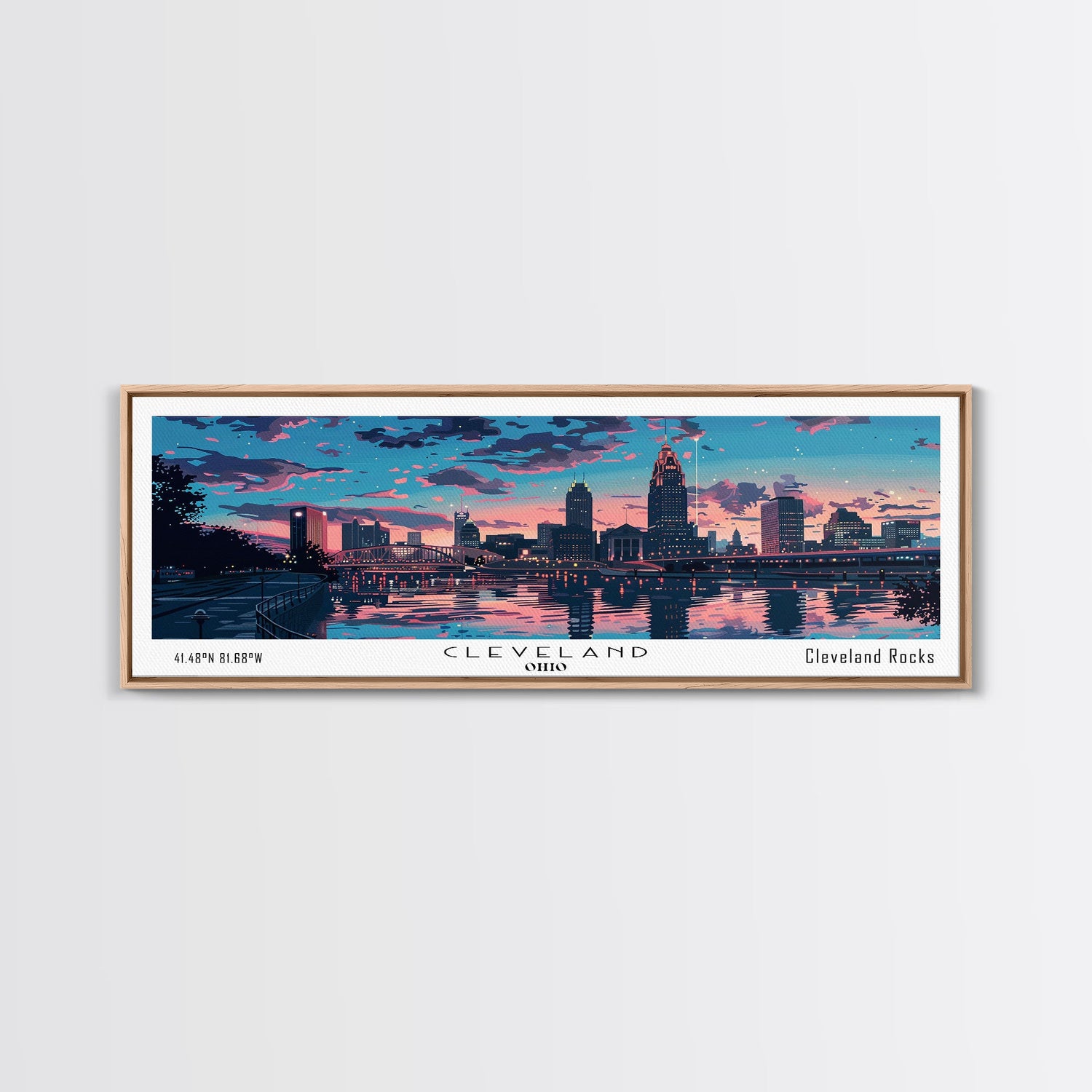 Cleveland Ohio Panoramic Painting, Mid Century Modern Framed Canvas Print, Retro Pop Art Travel Poster, City Wall Art, Office Decor