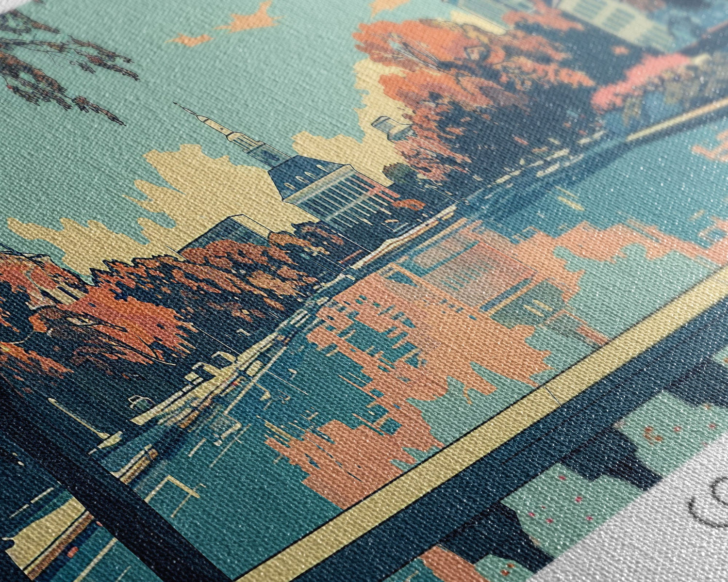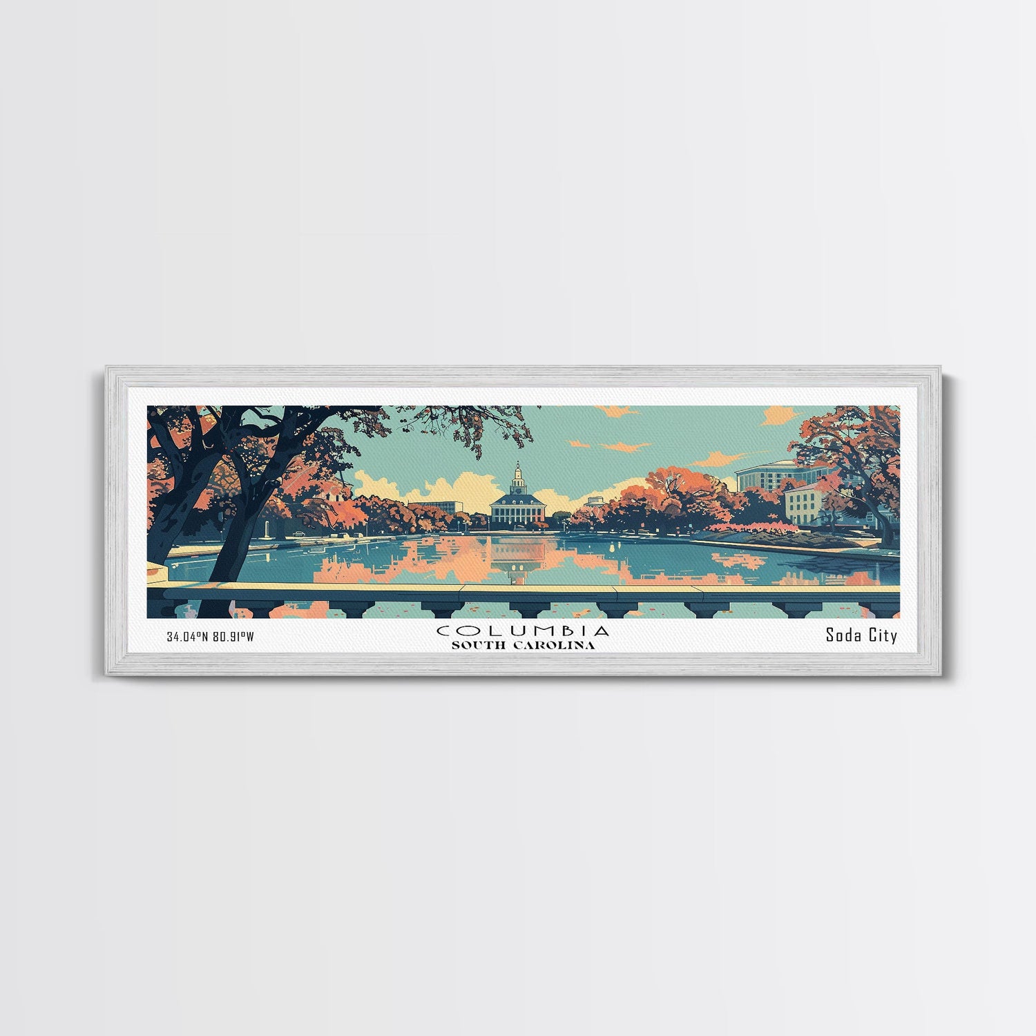 Columbia South Carolina Panoramic Painting, Mid Century Modern Framed Canvas Print, Retro Pop Art Travel Poster, City Art Gift, Home Decor