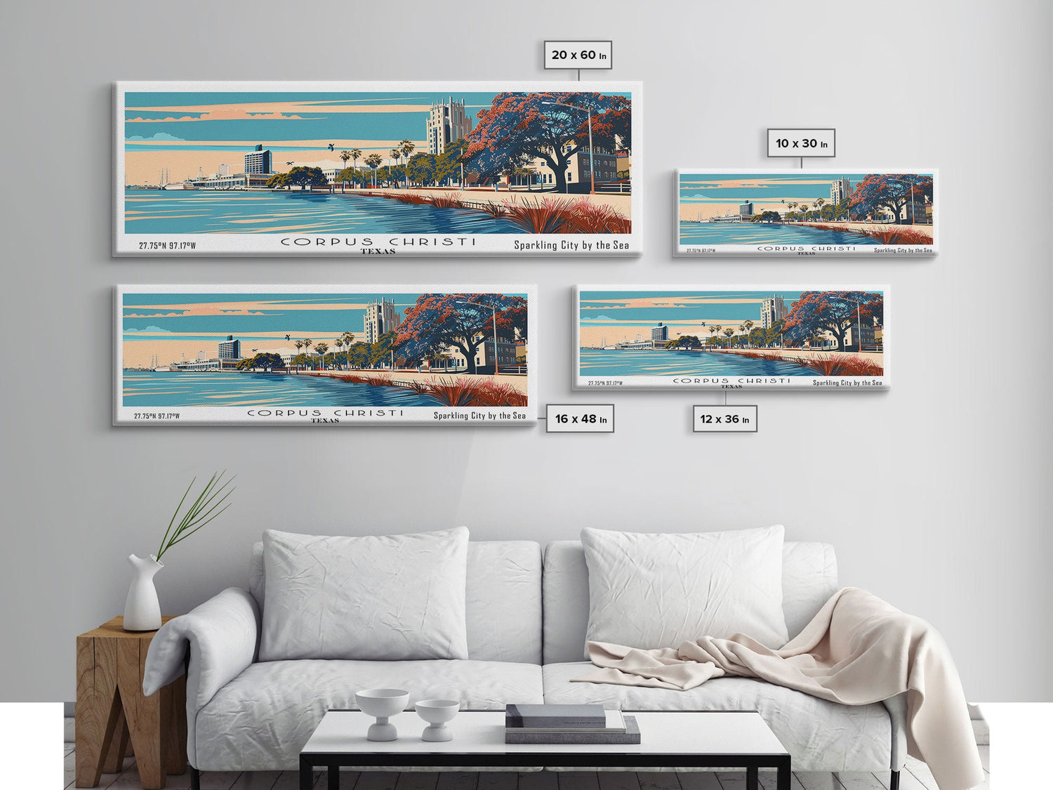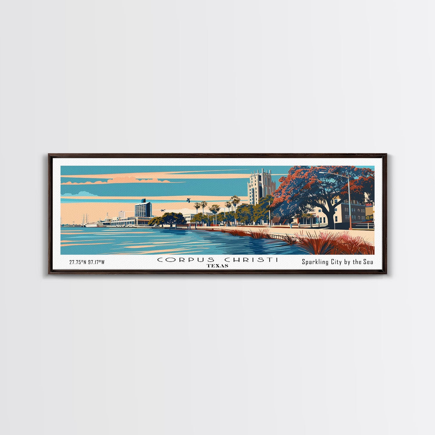 Corpus Christi Texas Panoramic Painting, Framed Canvas Print, Mid Century Modern Wall Art, Retro Pop Art Travel Poster, Office Decor, City Art