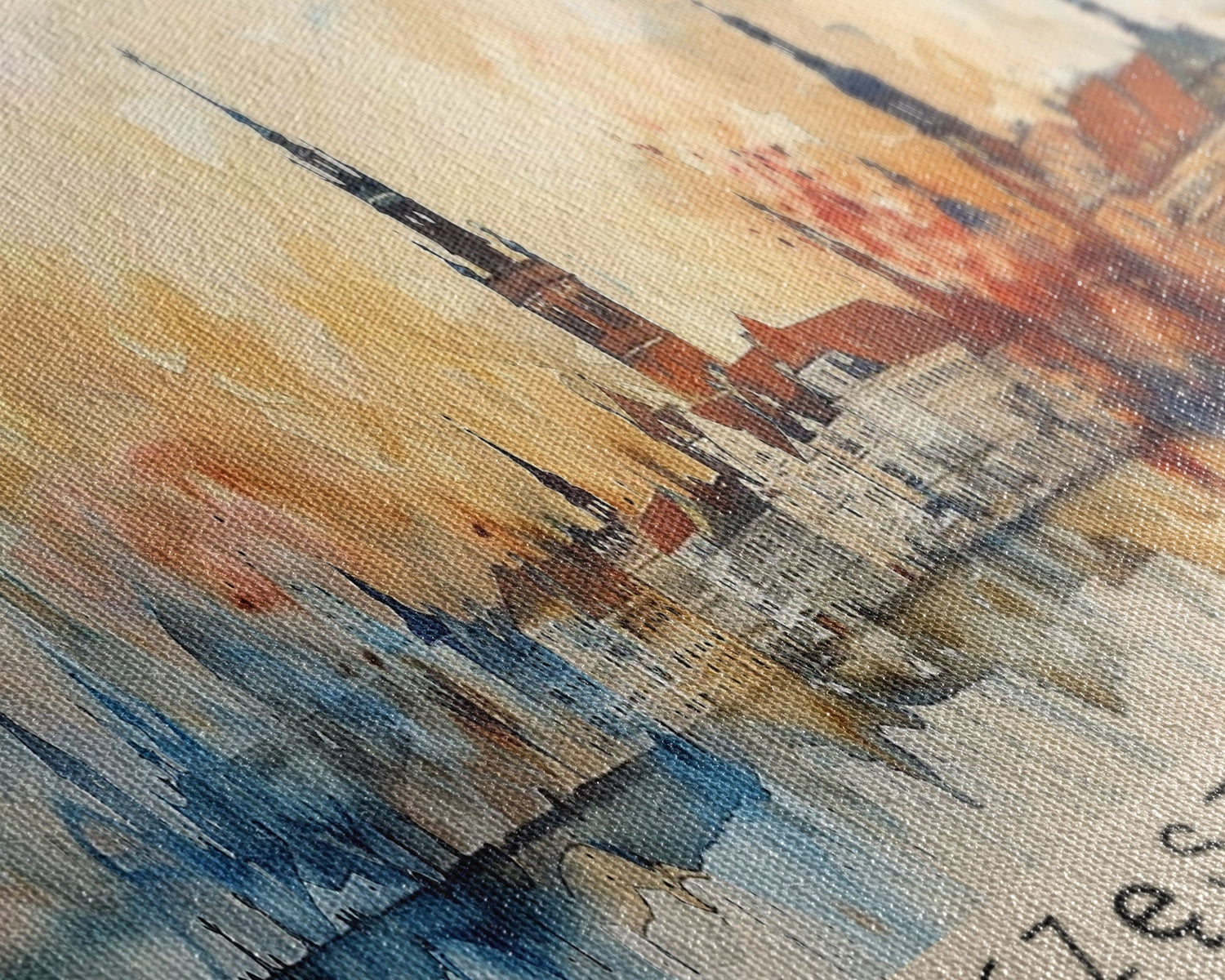 Most of our canvases are made in the USA, with the exception of canvases ordered with the light oak unstained frames, and any large canvases (24x48, 30x60, 16x48 and 20x60) ordered WITH a frame. These are temporarily made in and shipped from Europe, while we try to find a more consistent supplier in the USA.
