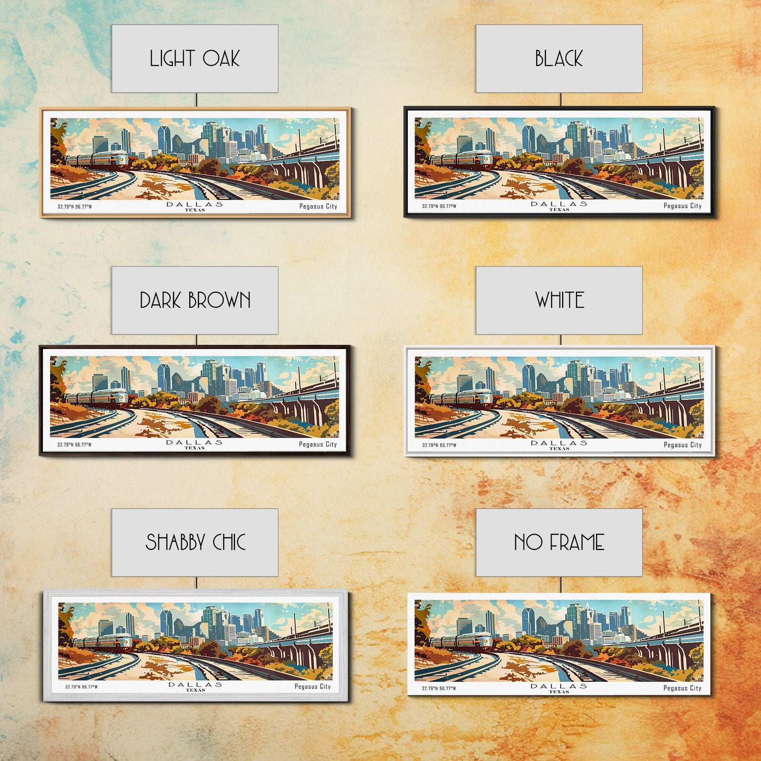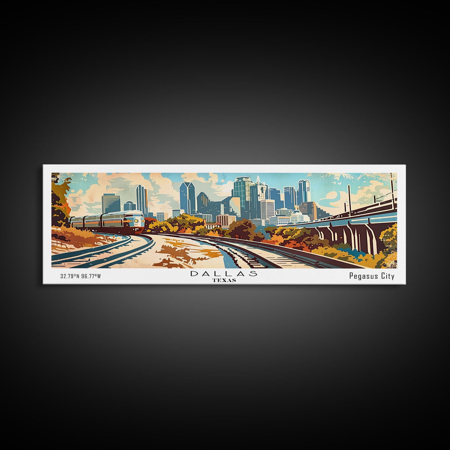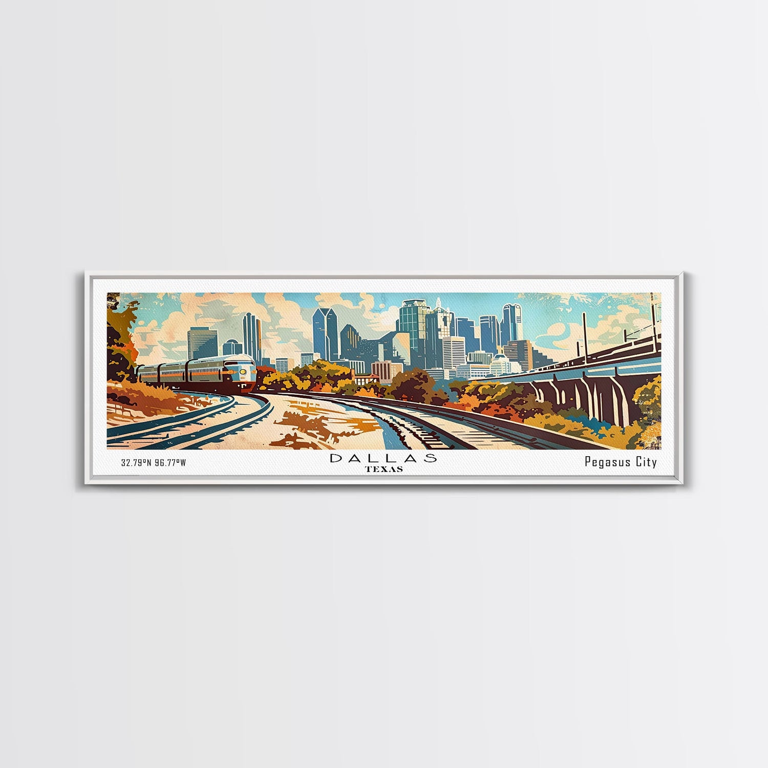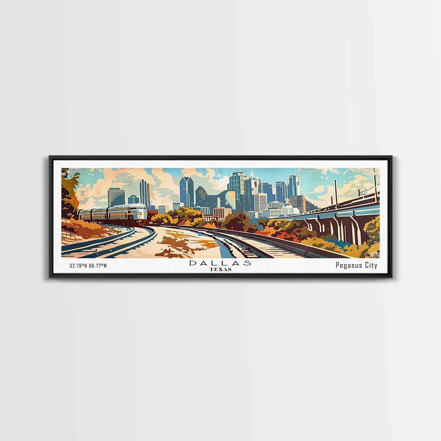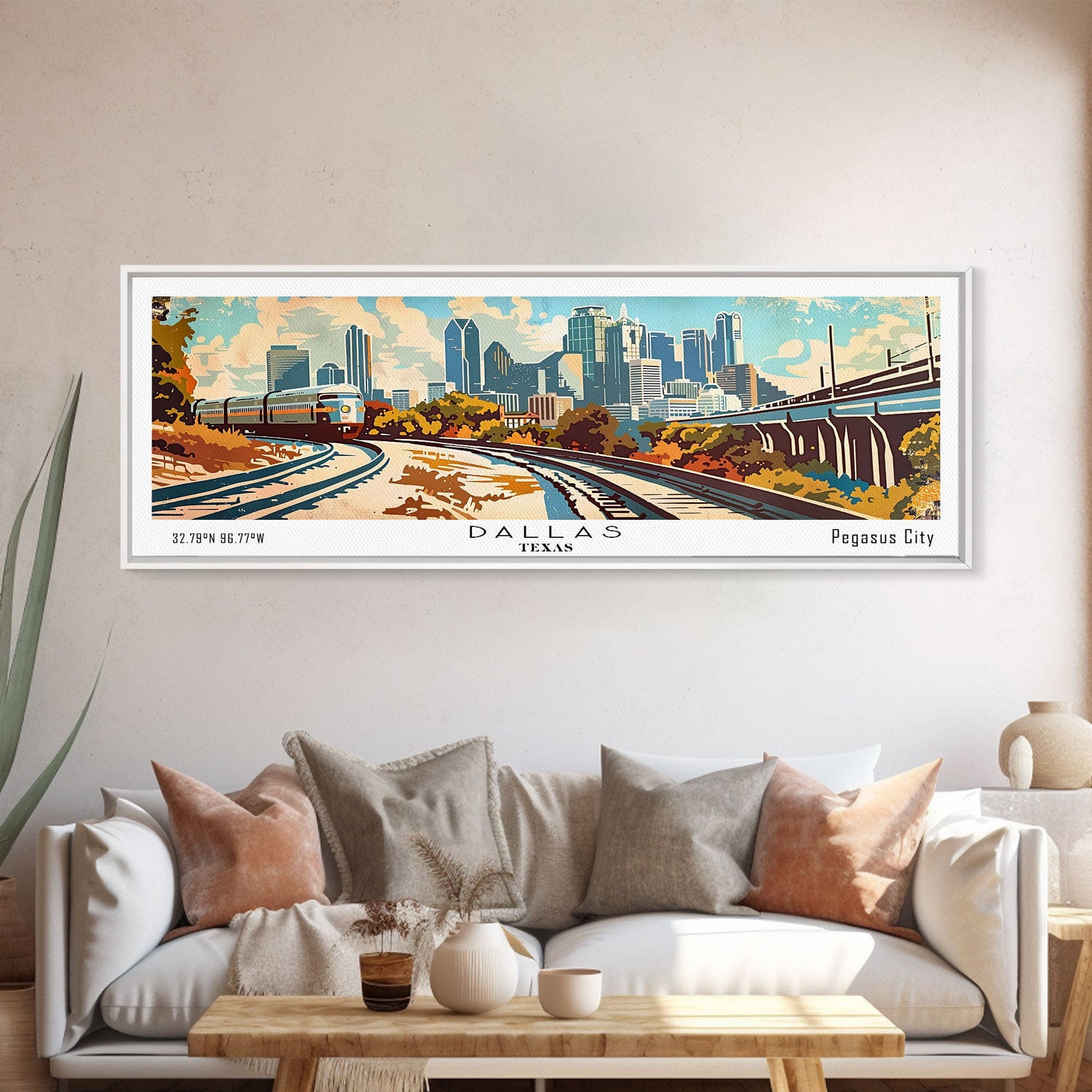 Dallas Texas Panoramic Wall Art, Retro Pop Art Framed Canvas Print, Mid Century Modern Travel Poster, Living Room Decor, Office Art
