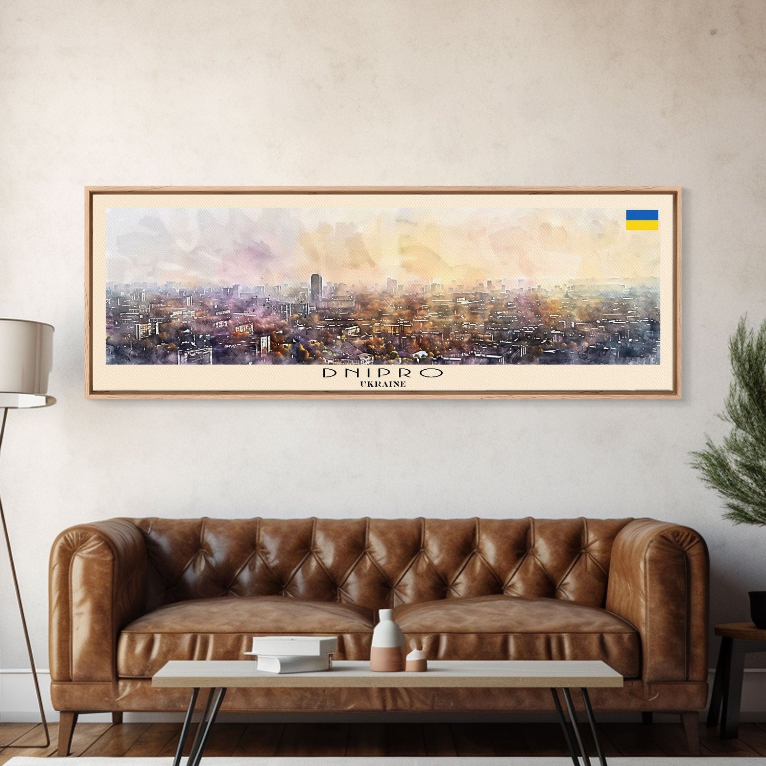Dnipro Ukraine Wall Art, Panoramic Travel Poster, Panoramic Framed Canvas Print, City Wall Art, Wall Hanging Home Decor, Travel Art