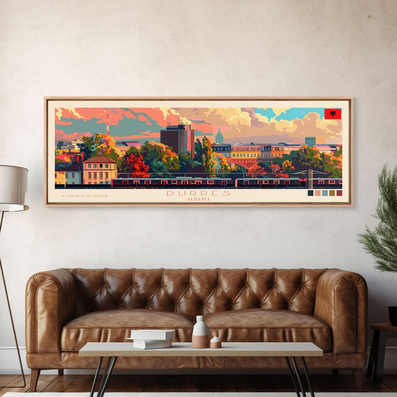 Durres Albania Travel Print Wall Art, Panoramic City Art, Travel Art, Wall Decor, Vacation Gift, Framed Canvas Print Or Metal Art