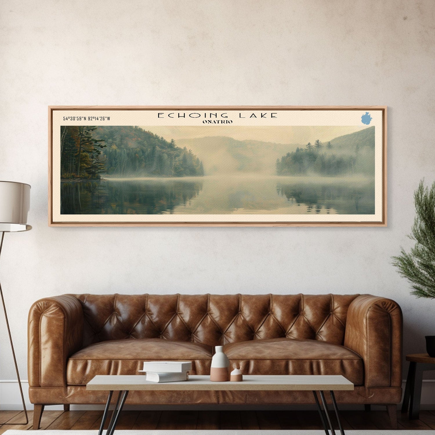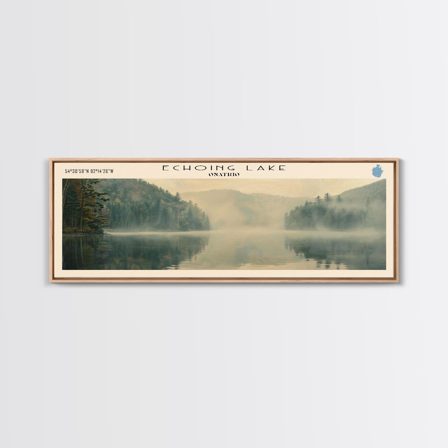 Echoing Lake Framed Canvas Print, Lake House Decor, Panoramic Wall Art, Travel Poster, Rustic Lake Painting, Home Decor