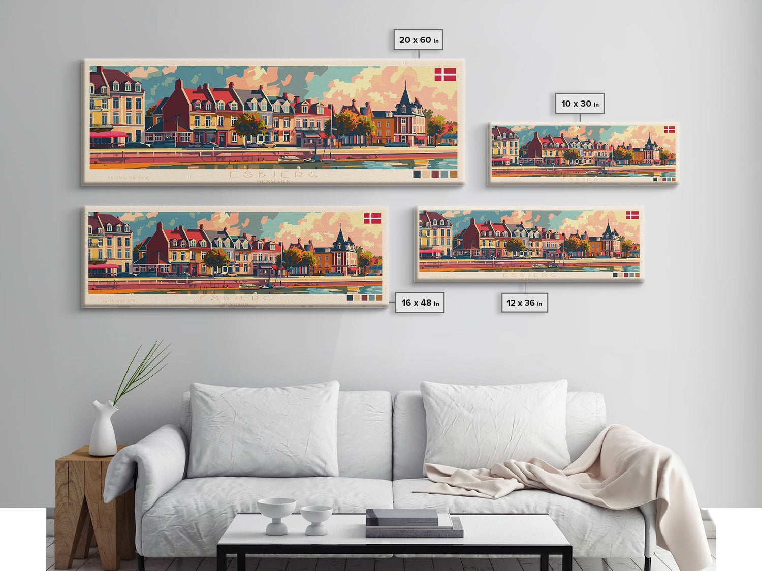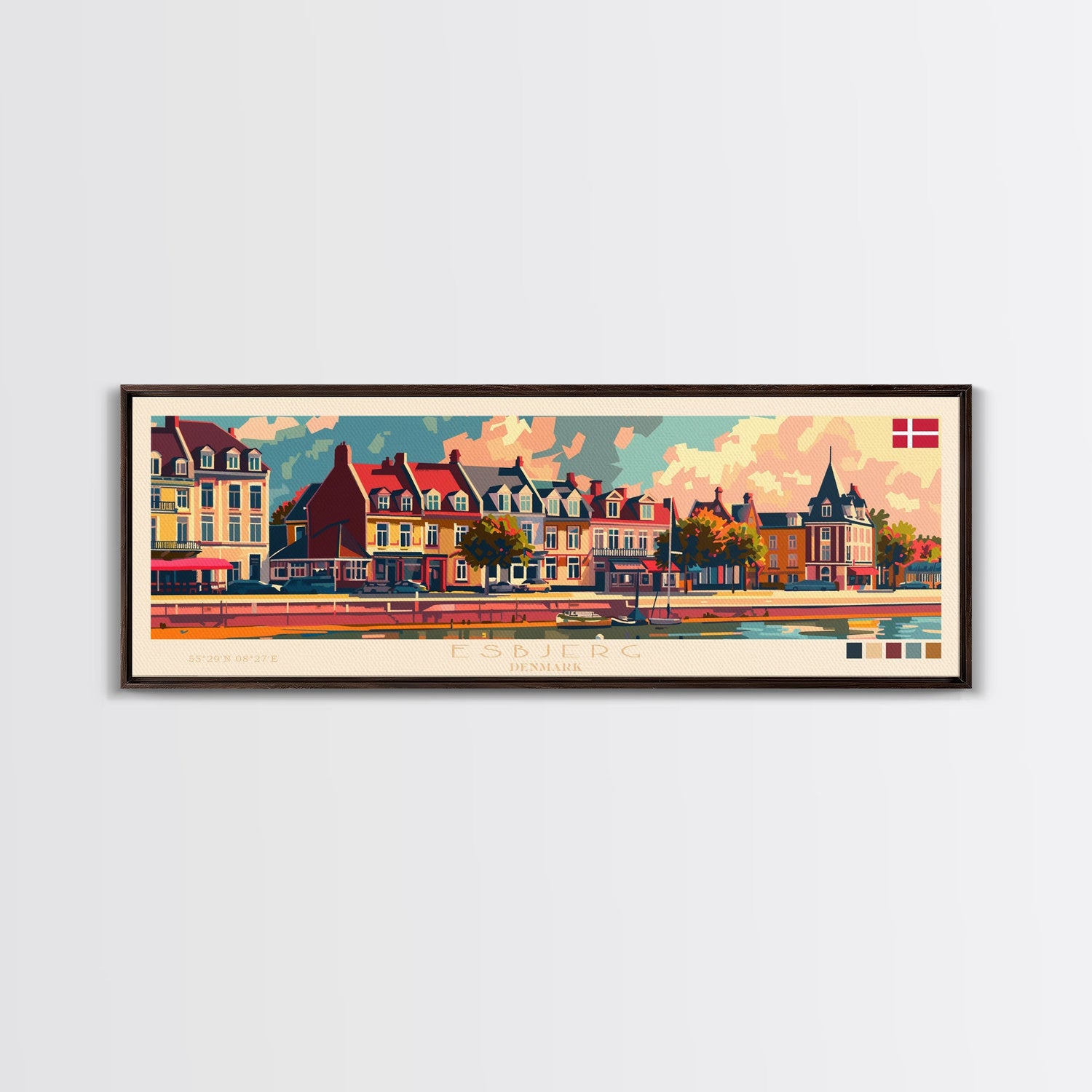 Esbjerg Denmark Travel Art, City Art, Framed Canvas Print or Metal Wall Art, Europe Travel Poster, Panoramic Wall Art, Extra Wide Wall Art
