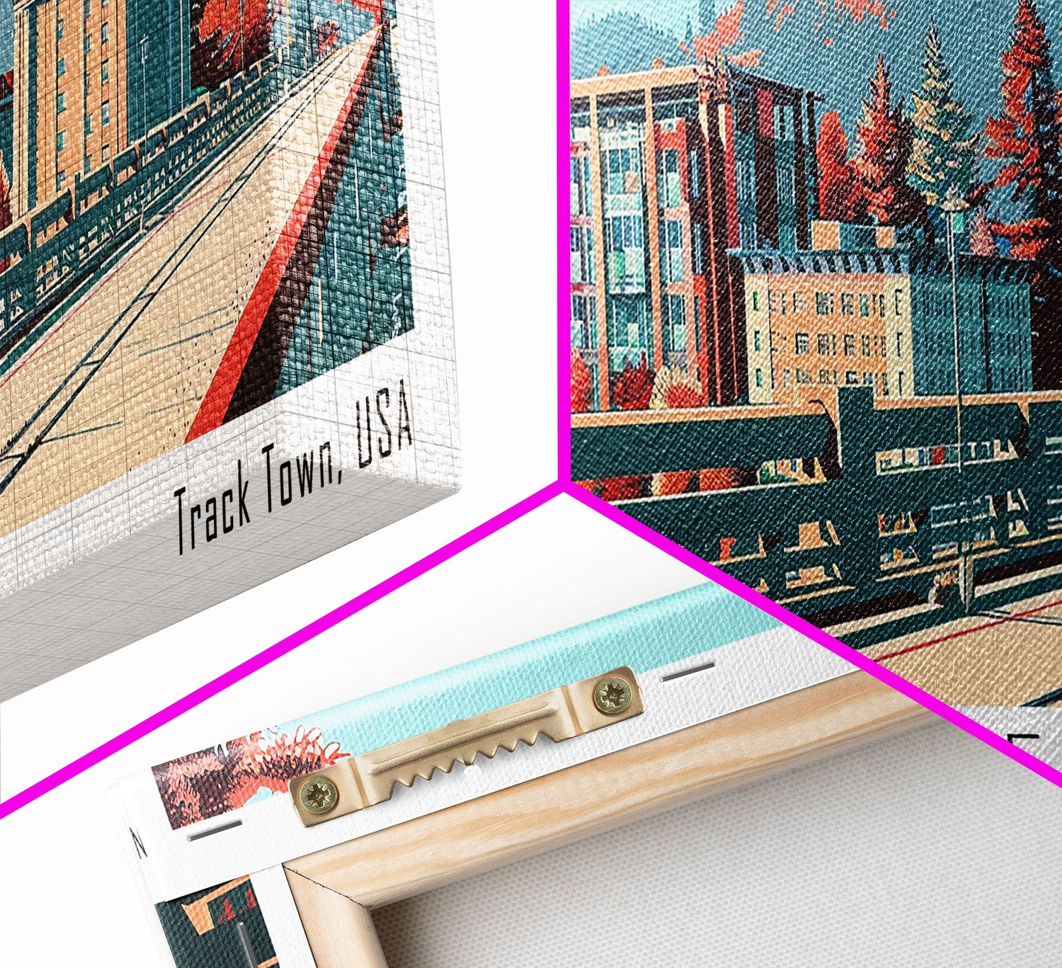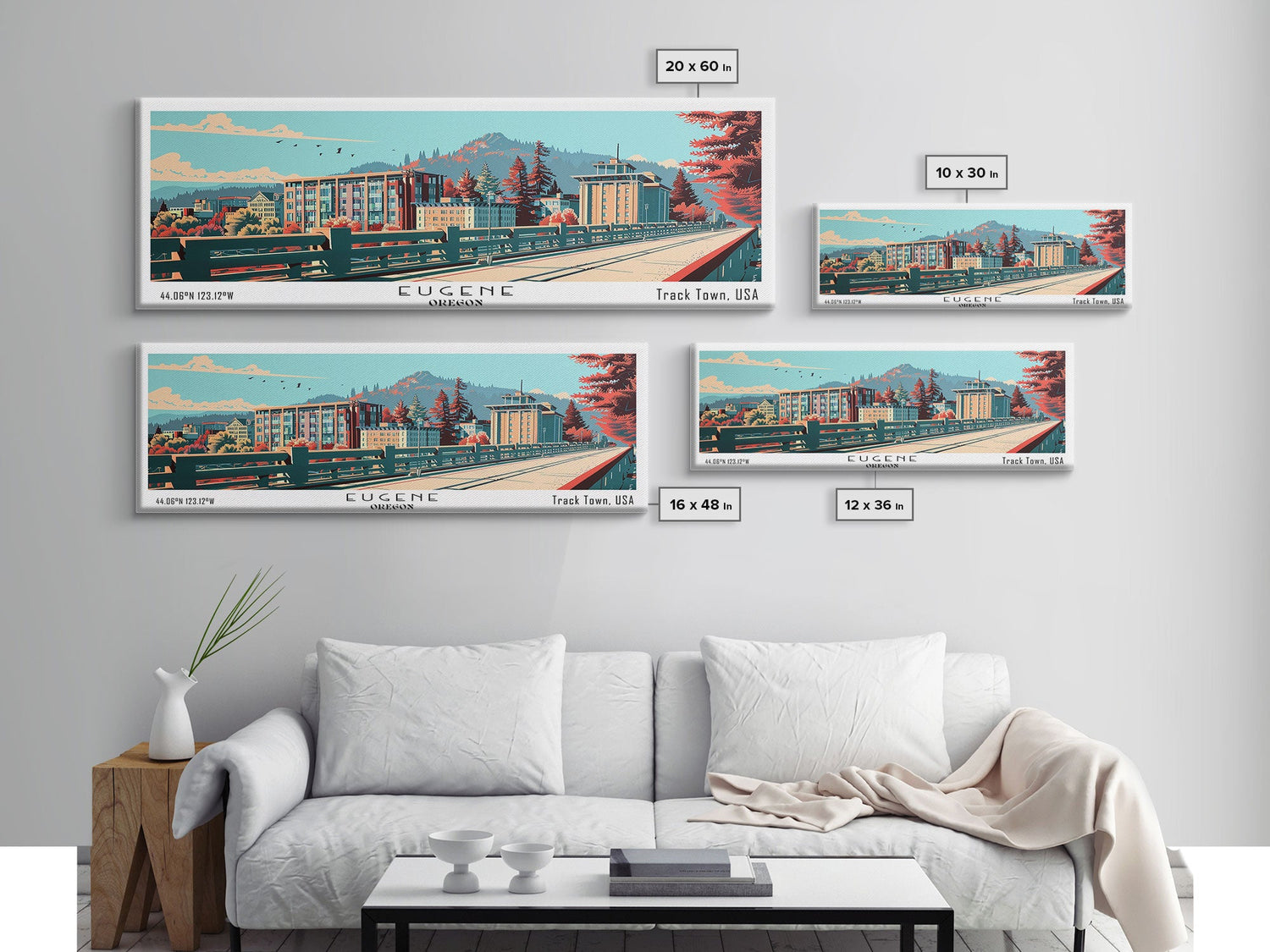 Eugene Oregon Panoramic Painting, Framed Canvas Print, Mid Century Modern Wall Art, Retro Pop Art Travel Poster, Office Decor, City Art