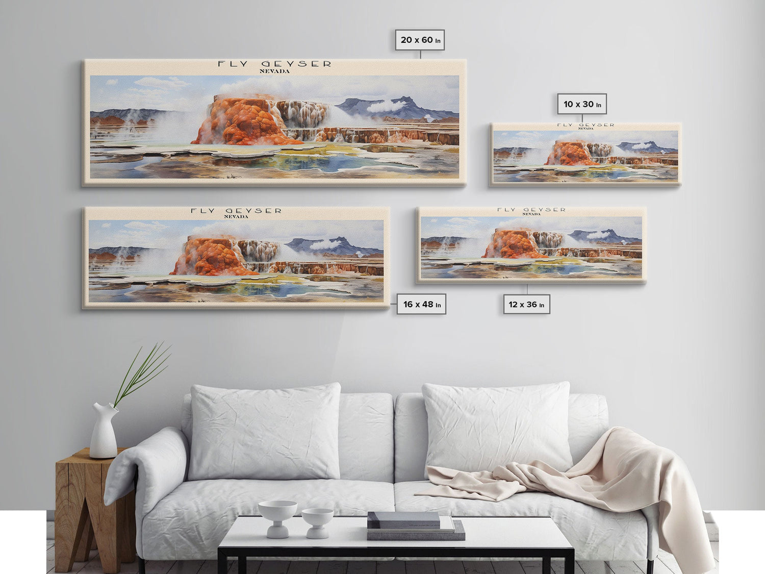 Fly Geyser Travel Poster Print, Framed Canvas Print, COUNTRY Travel Art, Wood Framed Art, Wall Hanging, Home Decor - 10x30 Inches / Gallery Wrap Canvas - Ready To Hang está agotado y se enviará tan pronto como vuelva a estar disponible.