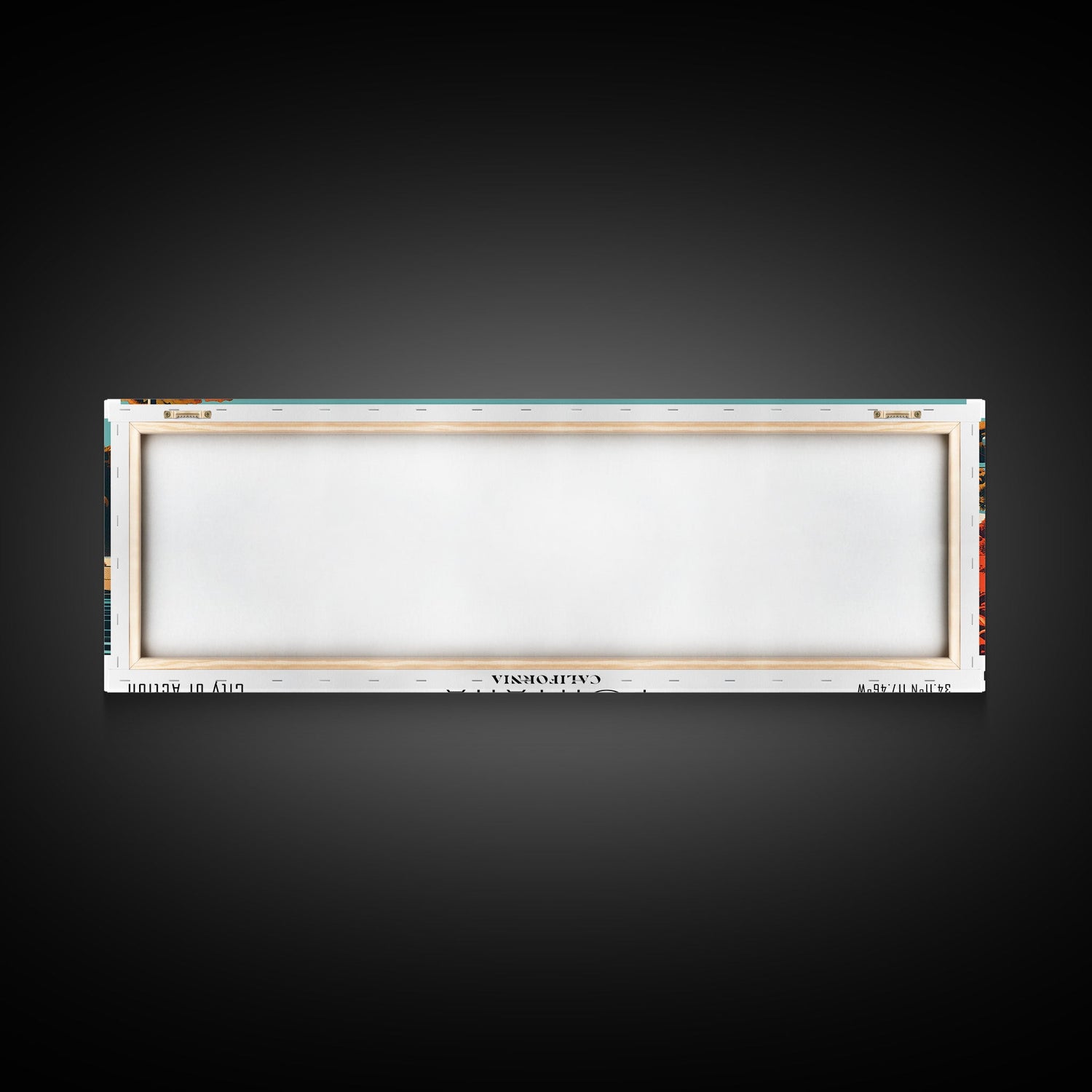 Fontana California Panoramic Painting, Framed Canvas Print, Mid Century Modern Wall Art, Retro Pop Art Travel Poster, Living Room Decor, City Art