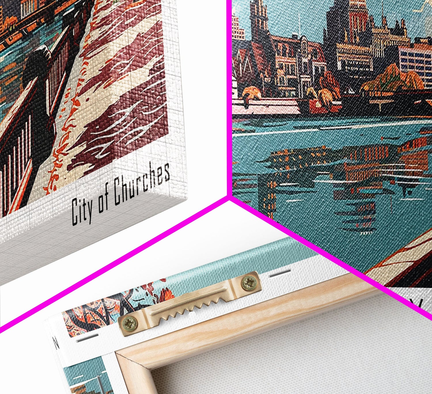 Fort Wayne Indiana Panoramic Painting, Framed Canvas Print, Mid Century Modern Wall Art, Retro Pop Art Travel Poster, Office Decor, City Art