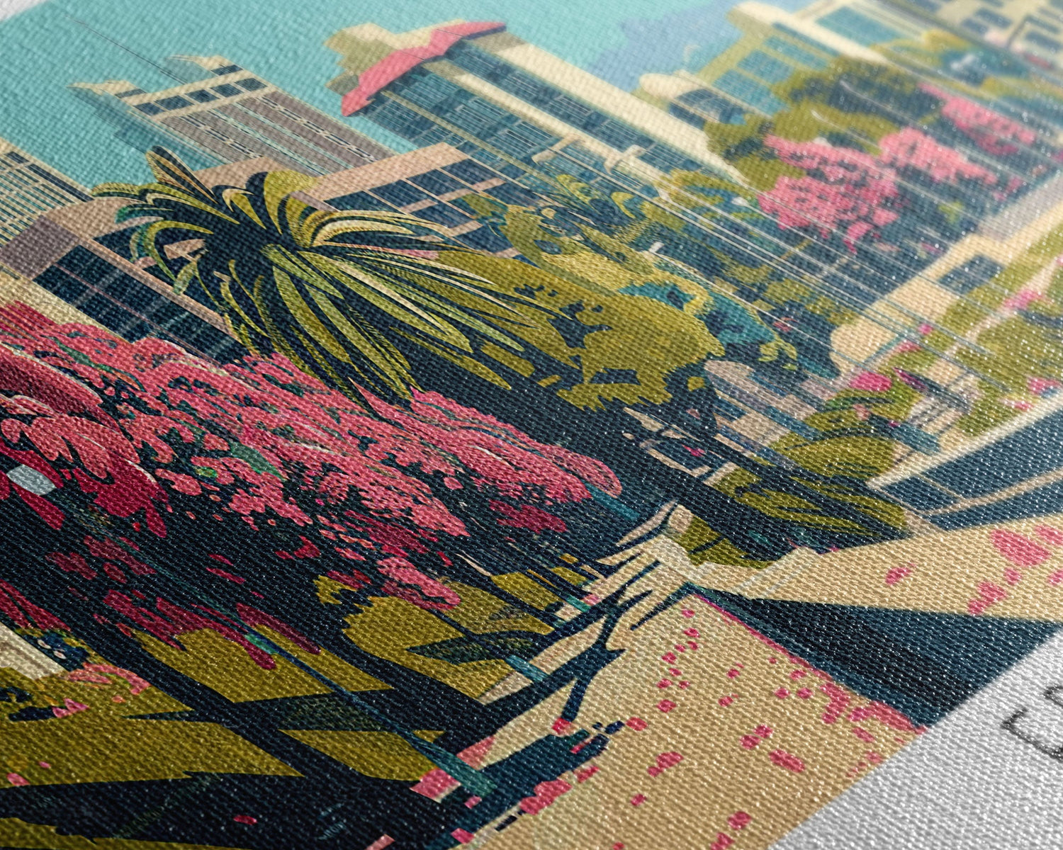 Fresno California Panoramic Painting, Framed Canvas Print, Mid Century Modern Wall Art, Retro Pop Art Travel Poster, Living Room Decor, City Art