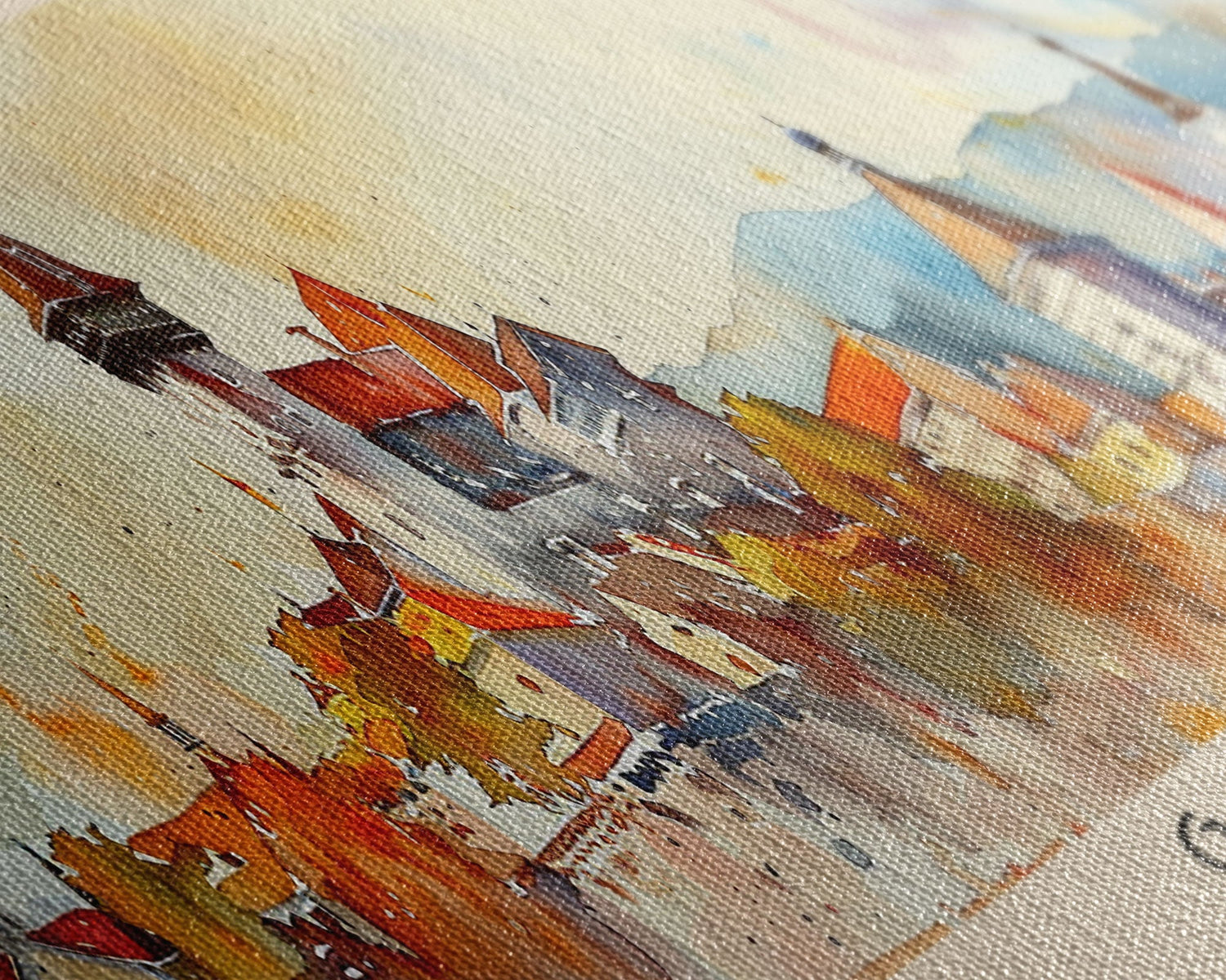 Most of our canvases are made in the USA, with the exception of canvases ordered with the light oak unstained frames, and any large canvases (24x48, 30x60, 16x48 and 20x60) ordered WITH a frame. These are temporarily made in and shipped from Europe, while we try to find a more consistent supplier in the USA.