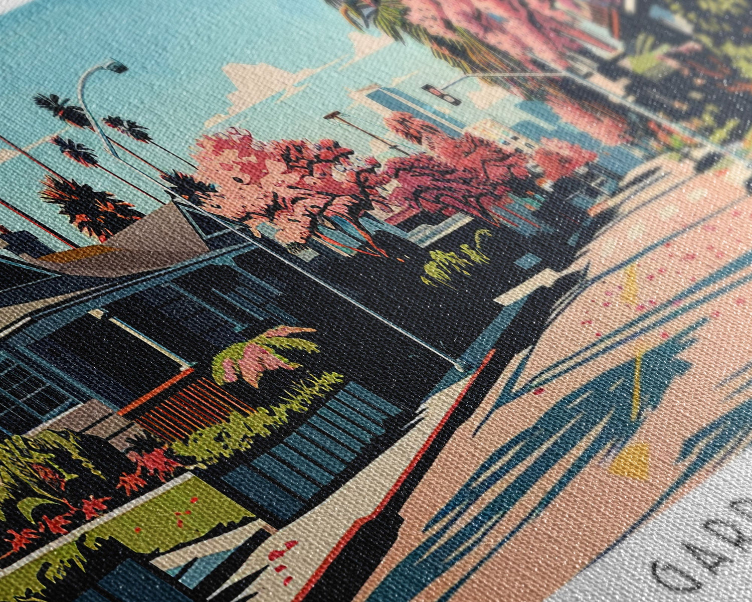 Garden Grove California Panoramic Painting, Framed Canvas Print, Mid Century Modern Wall Art, Retro Pop Art Travel Poster, Living Room Decor, City Art