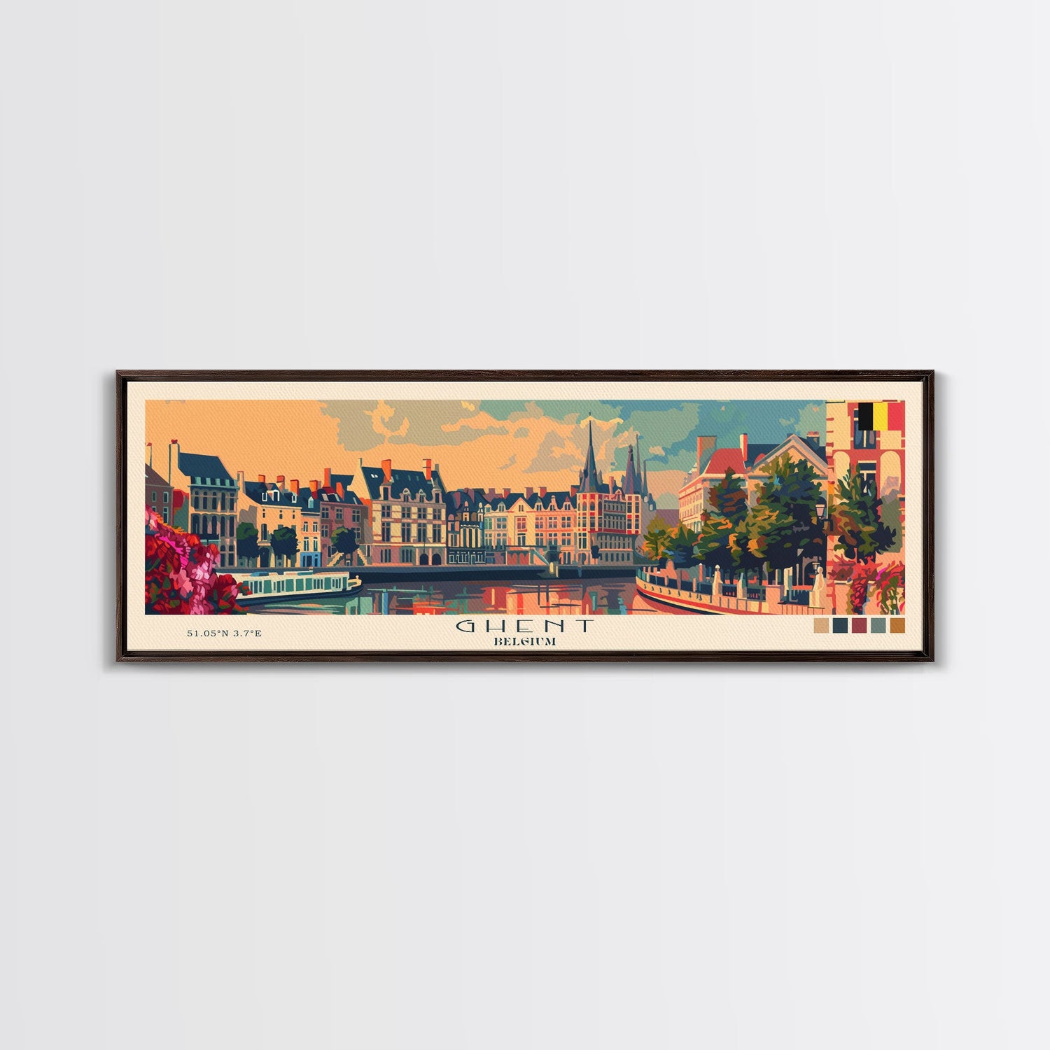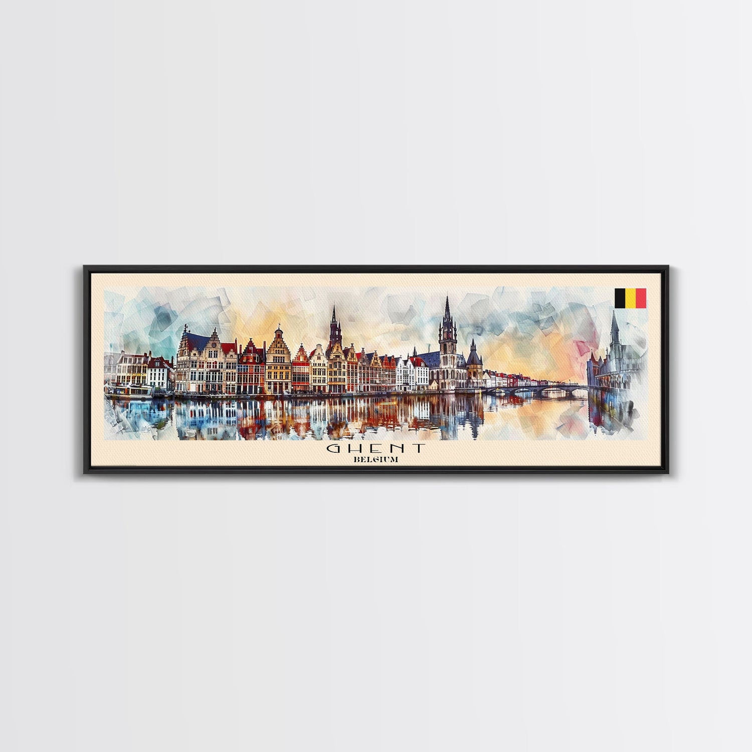Ghent Belgium Wall Art, Panoramic Travel Poster, Panoramic Framed Canvas Print, City Wall Art, Wall Hanging Home Decor, Travel Art