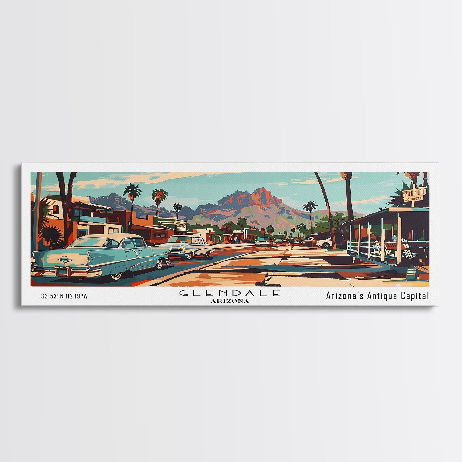 Glendale Arizona Panoramic Wall Art, Mid Century Modern Framed Canvas Print, Retro Pop Art Travel Poster, Home Decor, Office Wall Art, Gift Idea