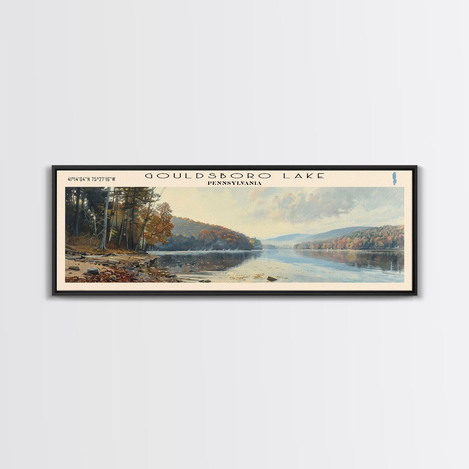 Gouldsboro Lake Pennsylvania Framed Canvas Print, Lake House Art, Panoramic Wall Art, Travel Poster, Serene Lake Painting, Home Decor