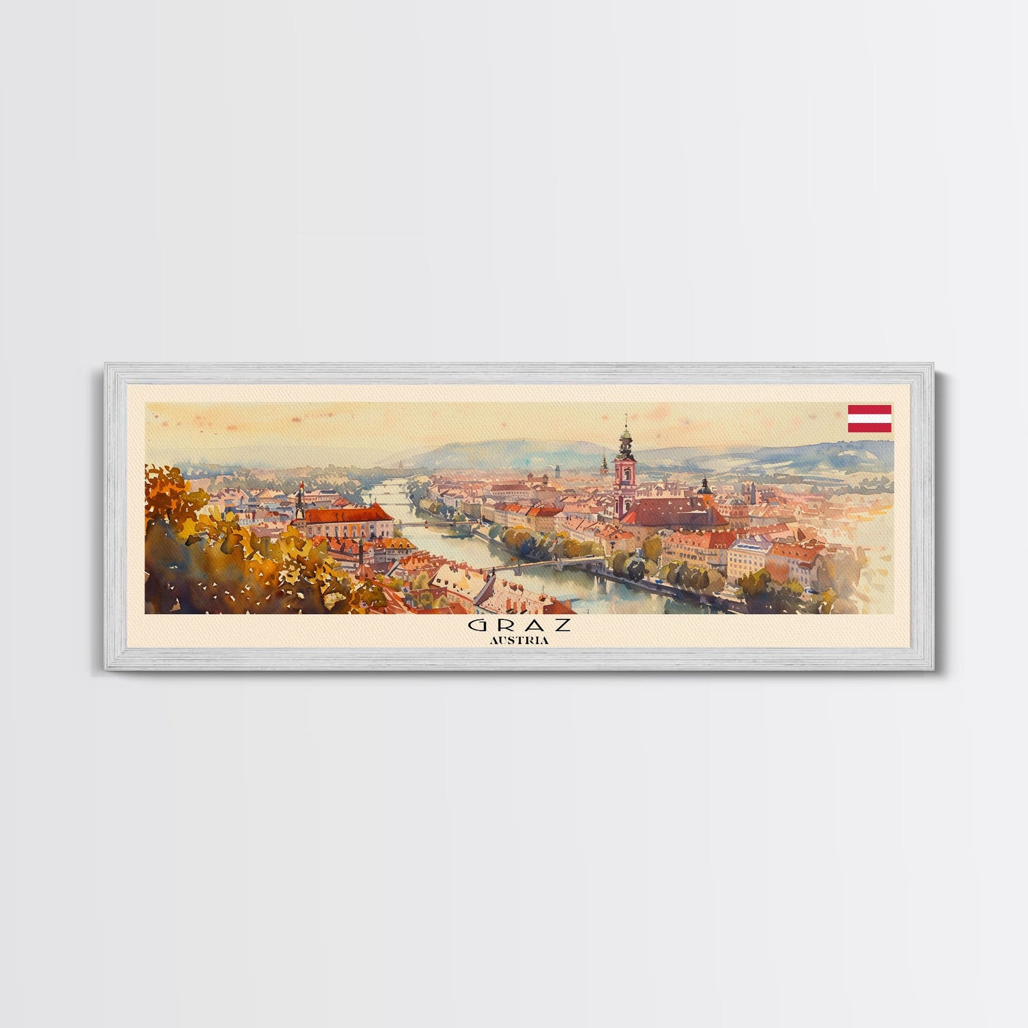 Graz Austria Wall Art, Panoramic Travel Poster, Panoramic Framed Canvas Print, City Wall Art, Wall Hanging Home Decor, Travel Art