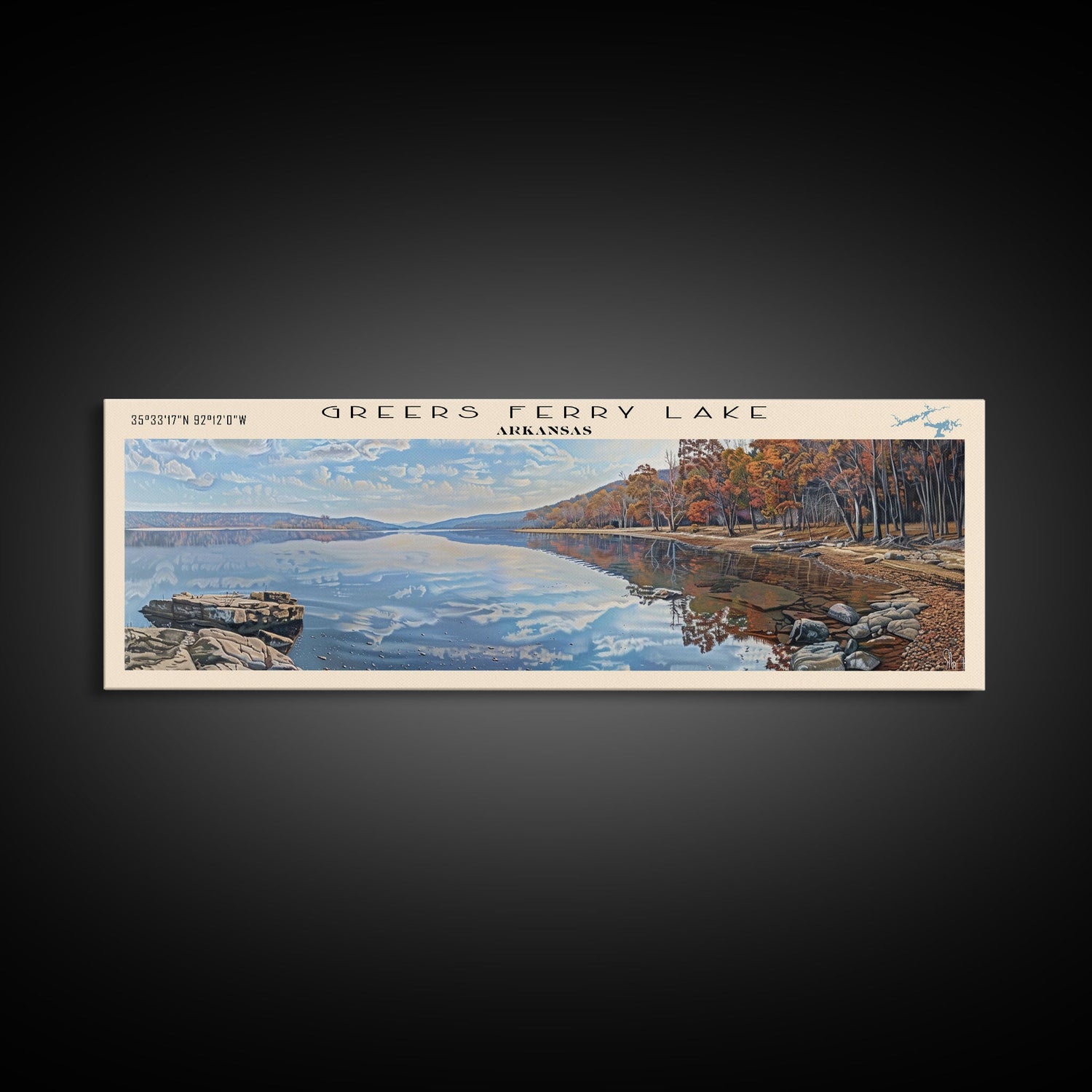Greers Ferry Lake Arkansas Framed Canvas Print, Panoramic Lake House Decor, Wall Art, Travel Poster, Beautiful Lake Painting, Nature Art