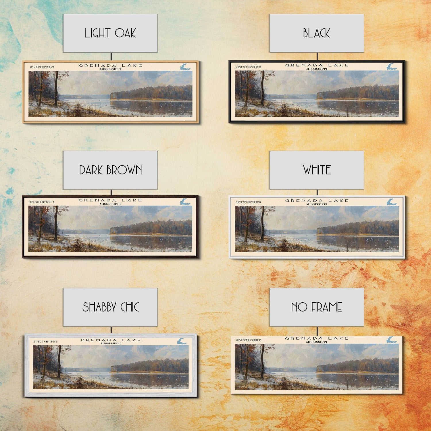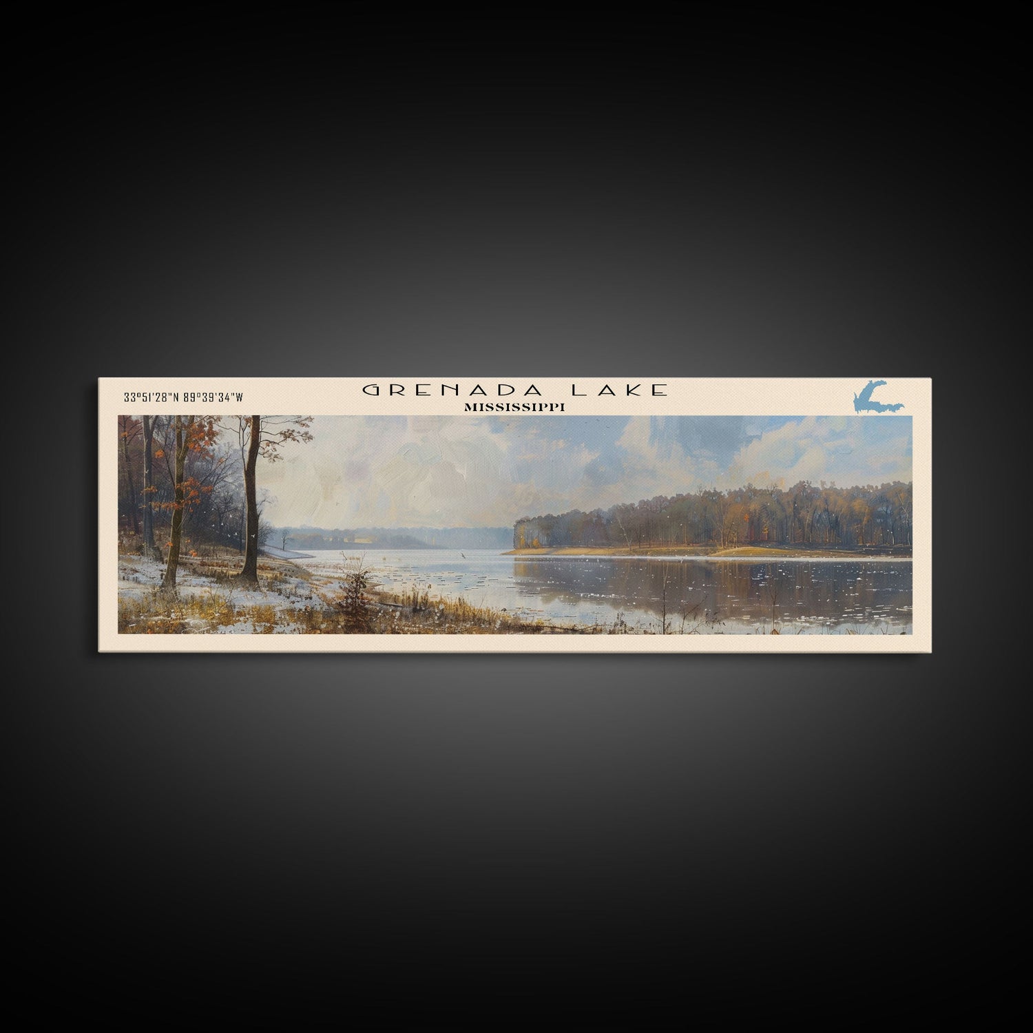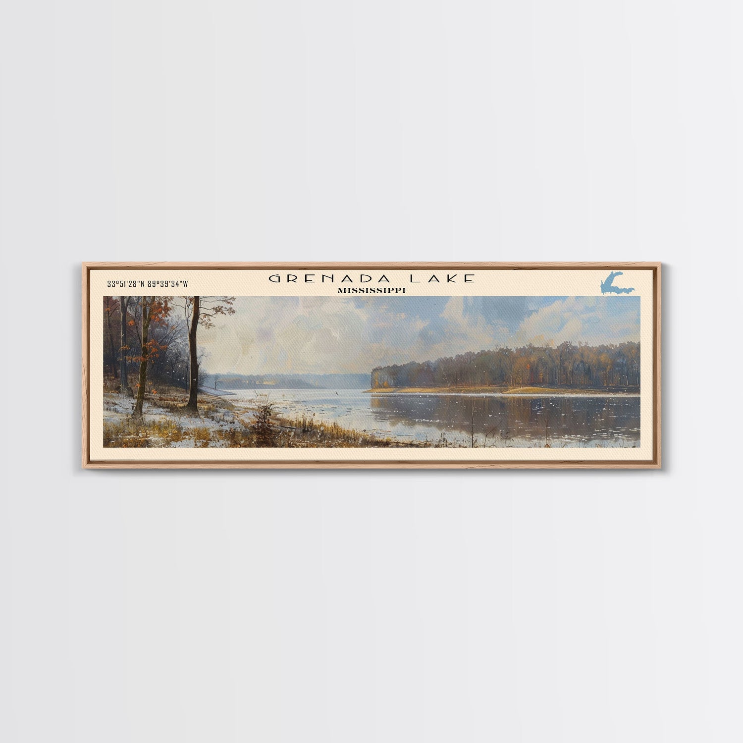 Grenada Lake Mississippi Framed Canvas Print, Lake House Art, Panoramic Wall Art, Travel Poster, Picturesque Lake Painting, Home Decor