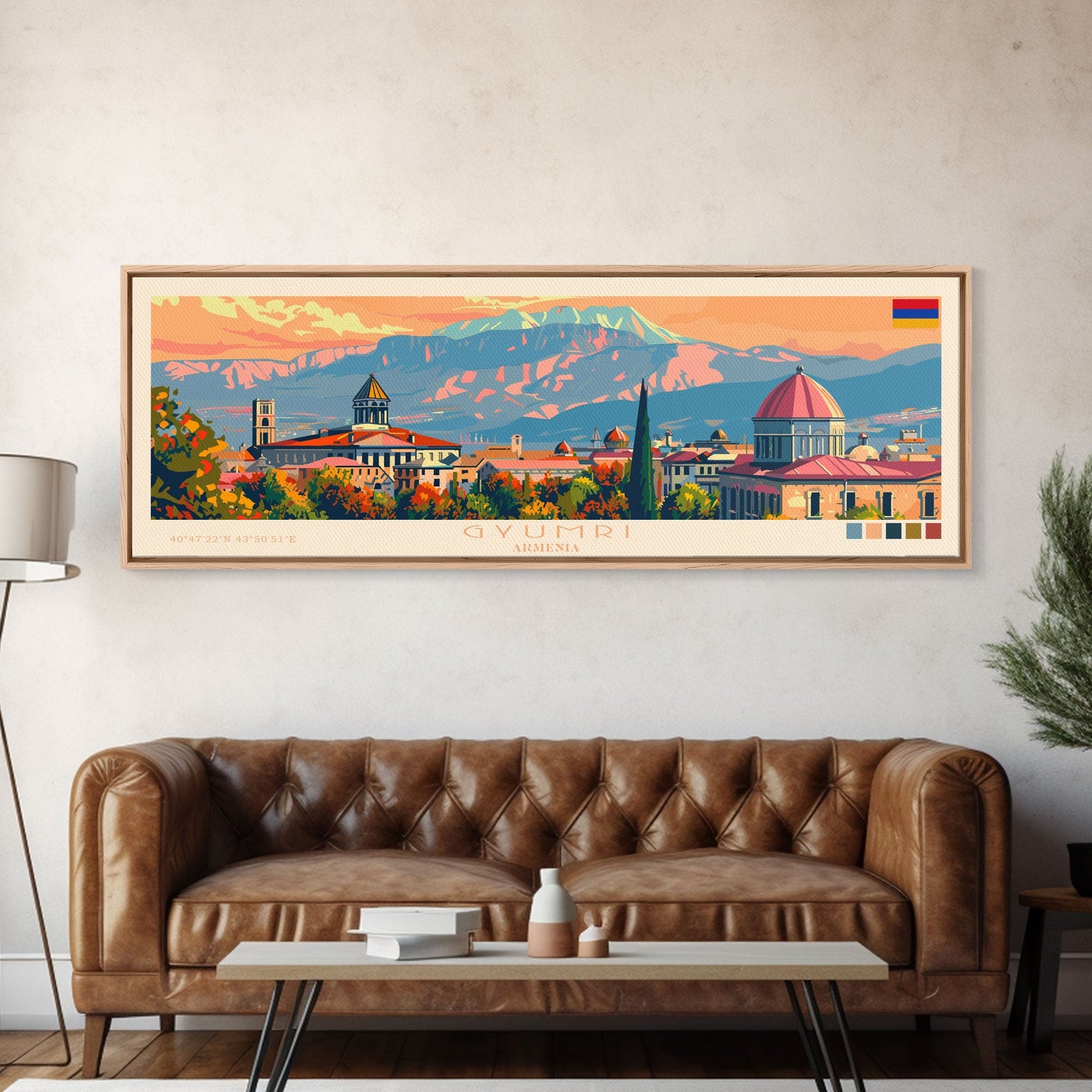 Gyumri Armenia Travel Print Wall Art, Panoramic City Art, Travel Art, Wall Decor, Vacation Gift, Framed Canvas Print Or Metal Art