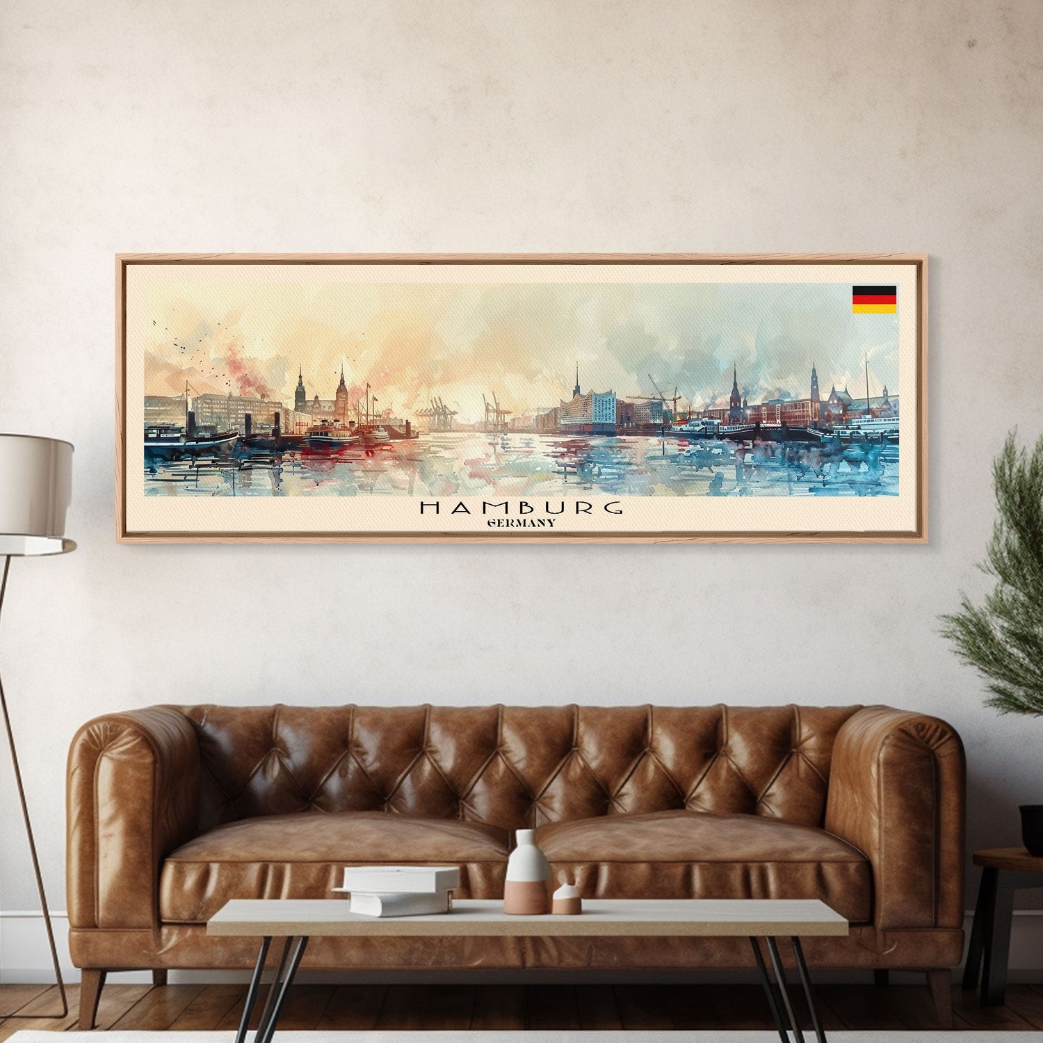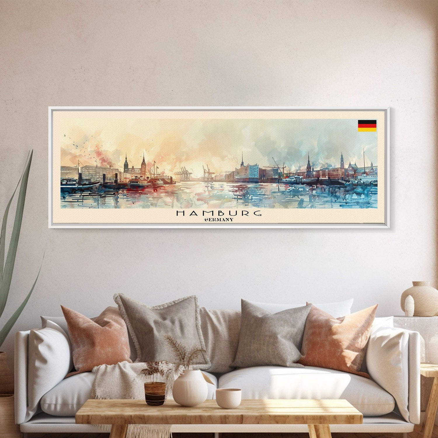 Hamburg Germany Travel Print Wall Art, Panoramic City Art, Travel Art, Wall Decor, Vacation Gift, Framed Canvas Print Or Metal Art