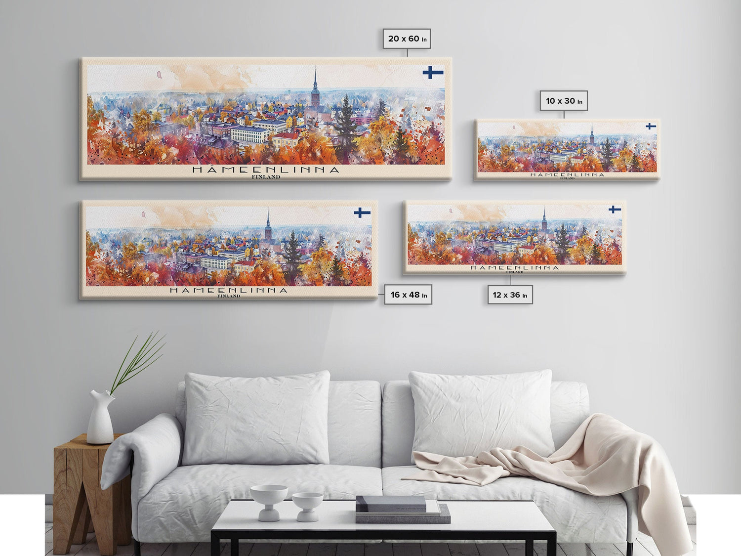 Hameenlinna Finland Travel Art, City Art, Framed Canvas Print or Metal Wall Art, Europe Travel Poster, Panoramic Wall Art, Extra Wide Wall Art
